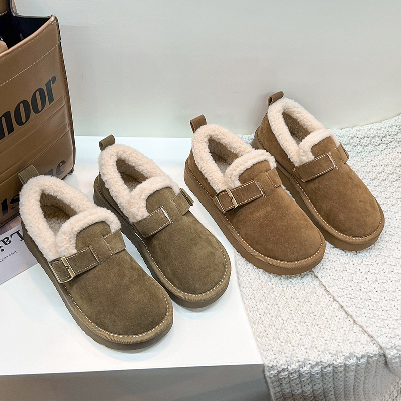 加绒加厚保暖一脚蹬软底防滑妈妈鞋 新款 雪地靴 女2024冬季 棉鞋