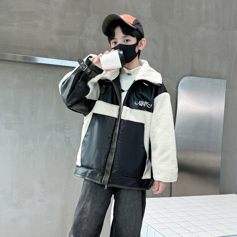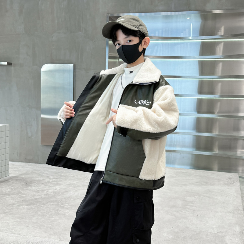 加绒冬季 中大童冬装 加厚秋冬夹克男孩 男童皮衣外套2025新款 儿童装