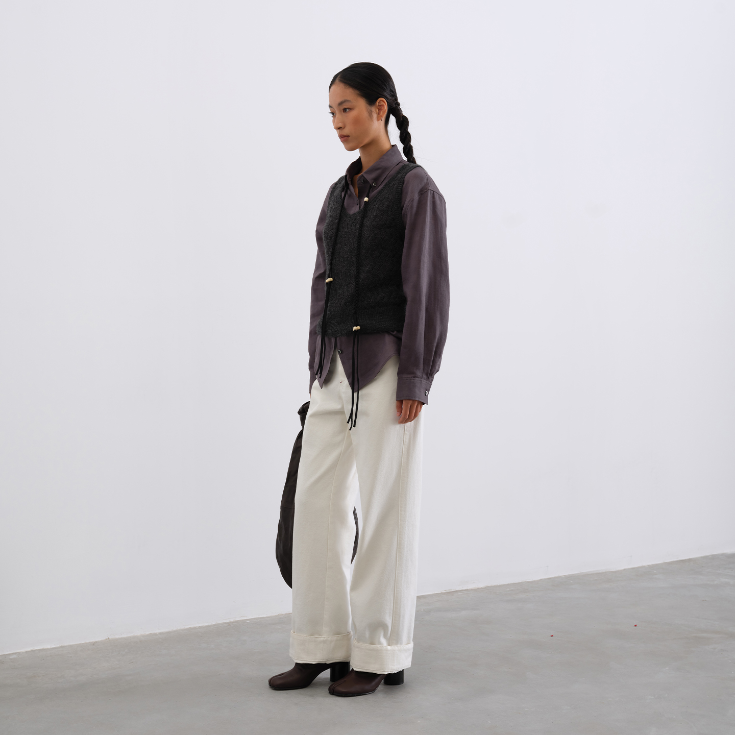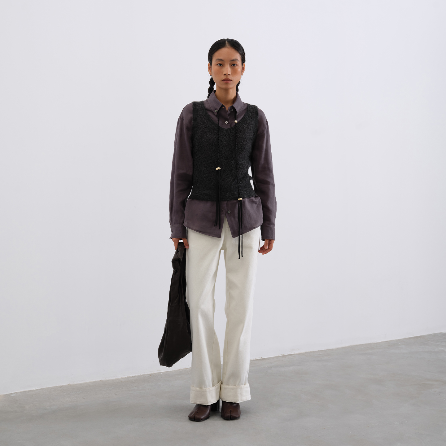 叠穿上衣 无袖 GREEN BELT城野牧境25冬绵羊毛针织背心女灰色修身