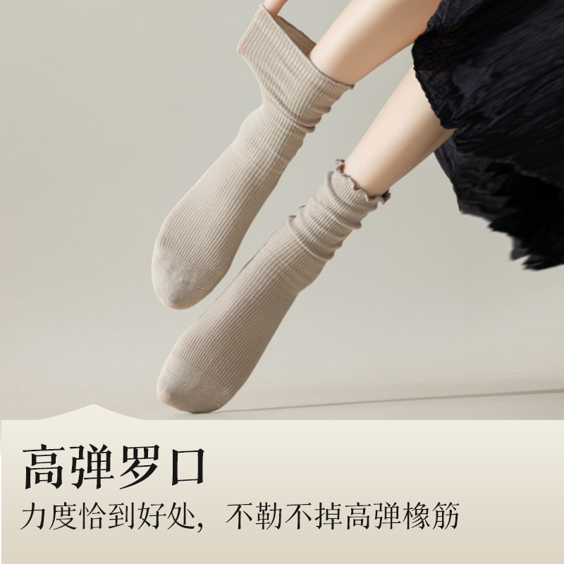 棉袜夏季 木耳边袜子女款 纯棉春秋无骨短袜防臭吸汗中筒袜配小皮鞋