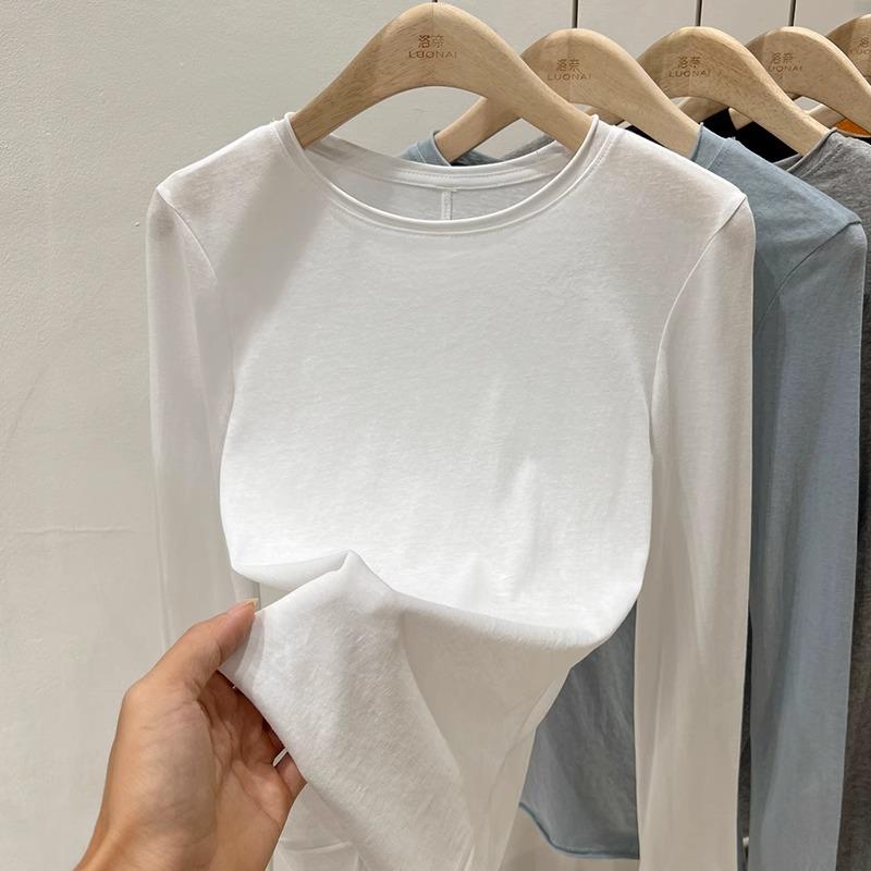 休闲秋冬打底纯棉内搭T t恤男士 明星同款 MrBu布先生长绒棉白色长袖