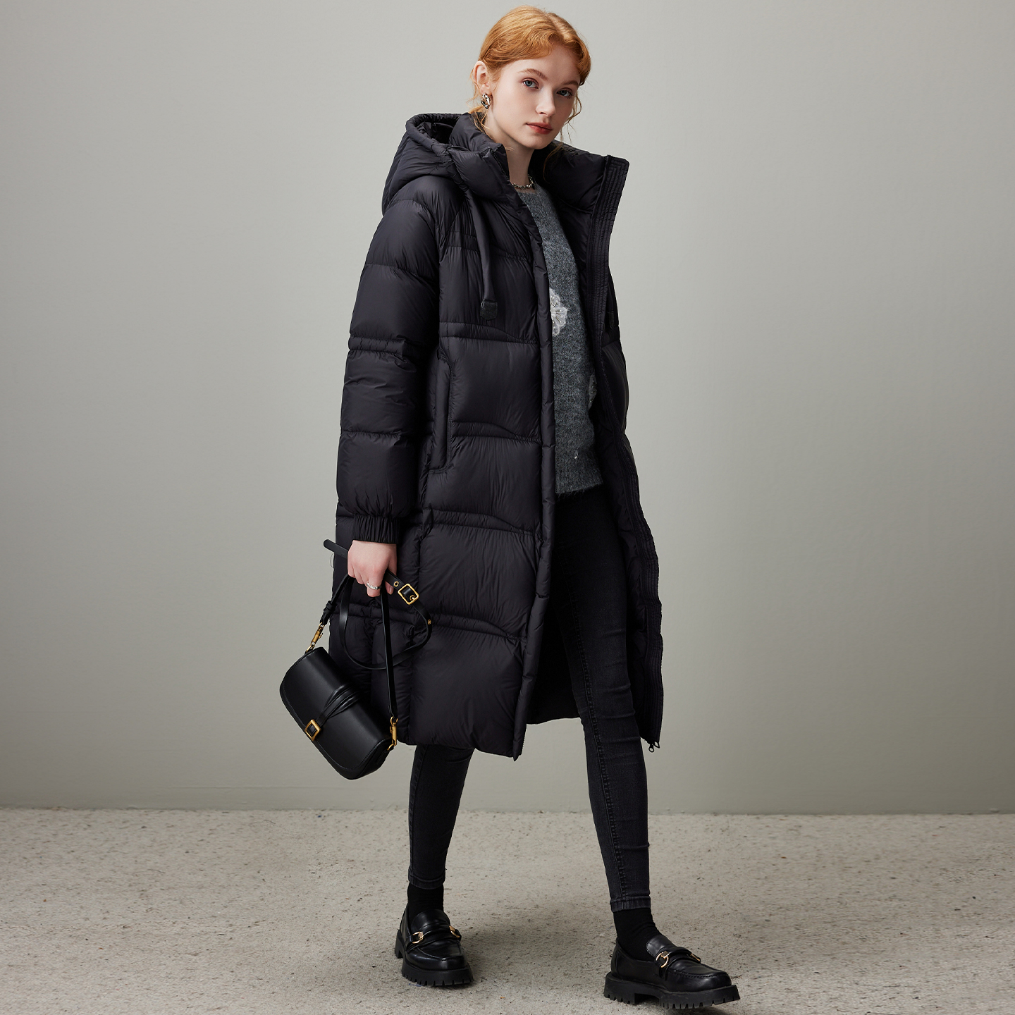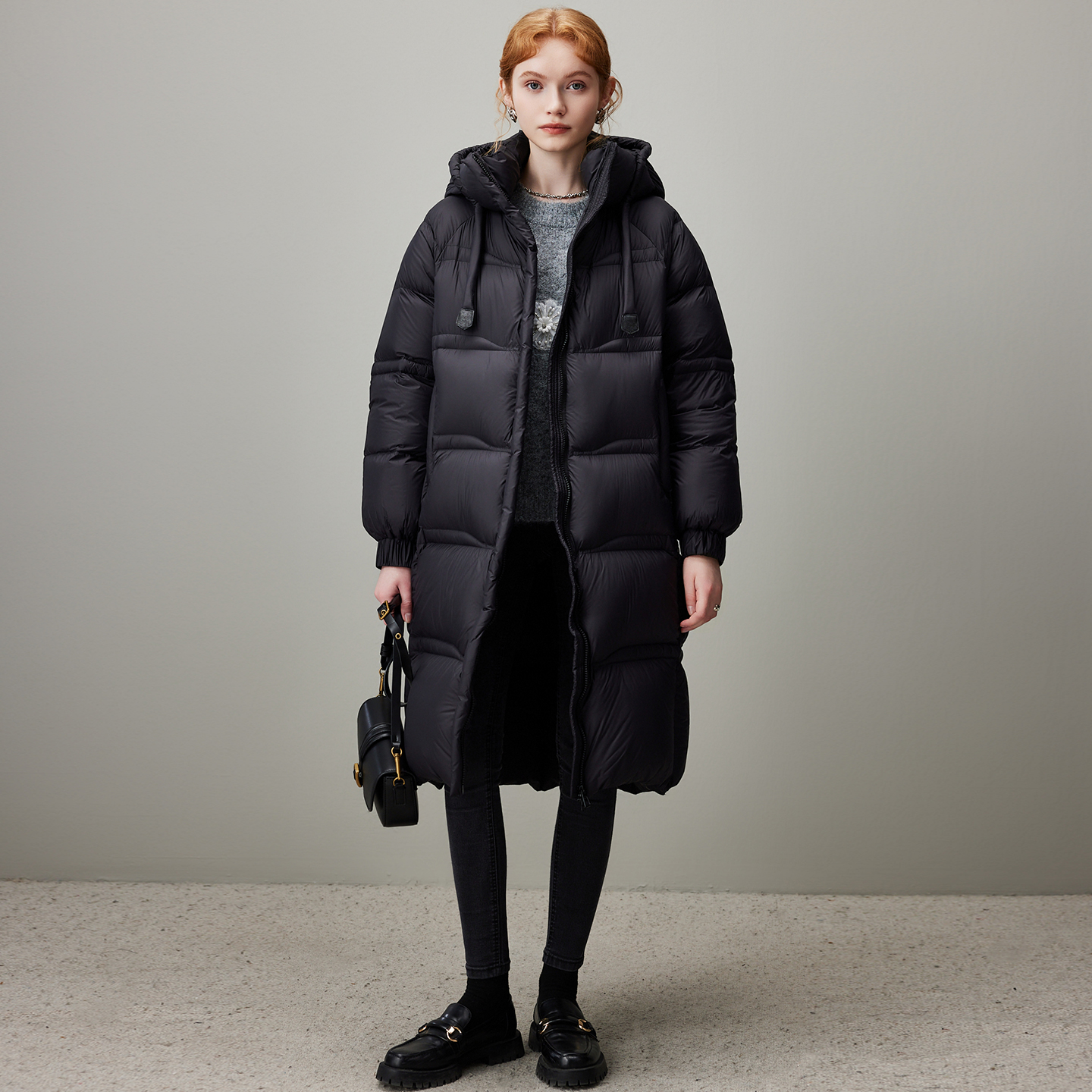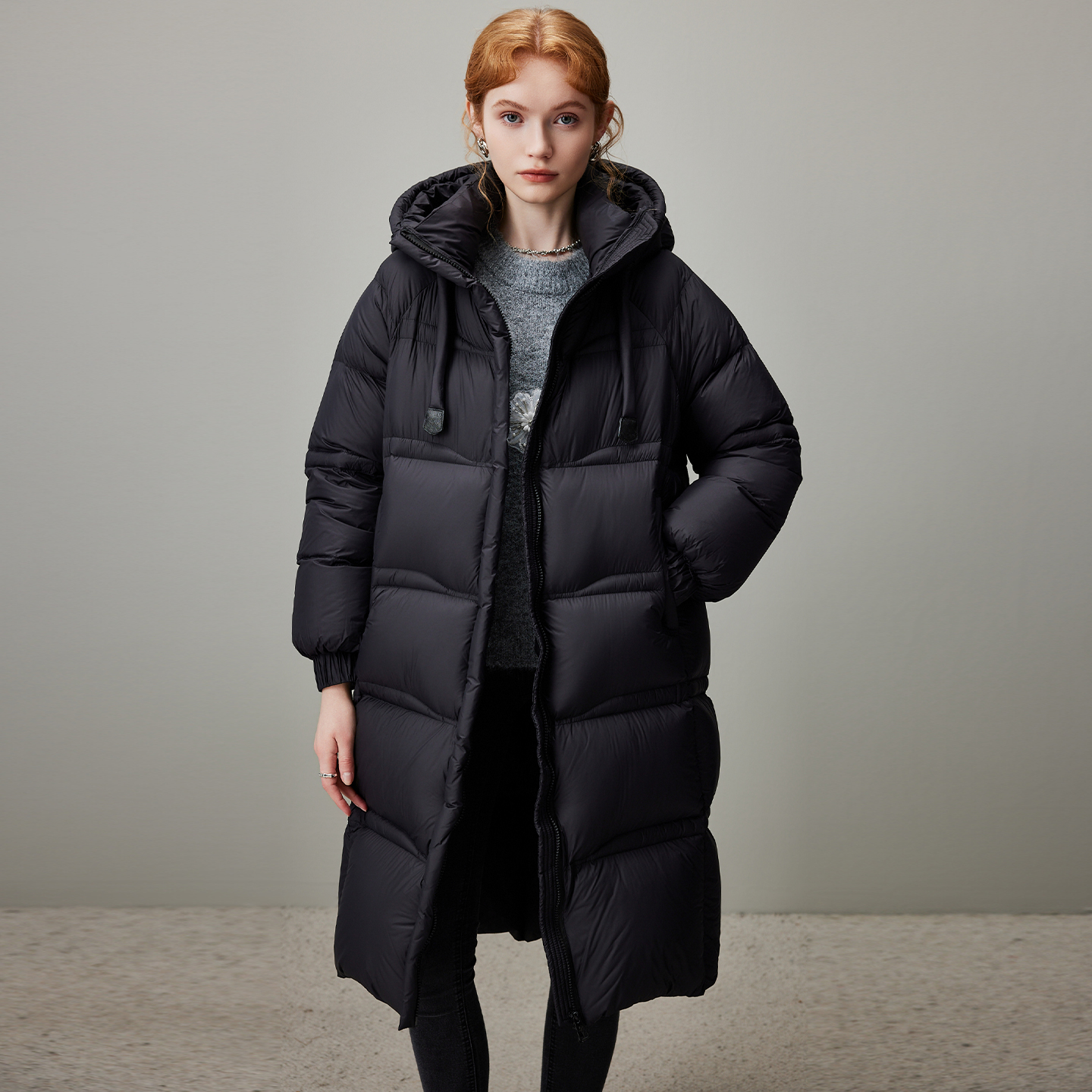 鸭鸭羽绒服女士2025秋冬反季 宽松百搭加厚保暖鸭绒外套 过膝中长款