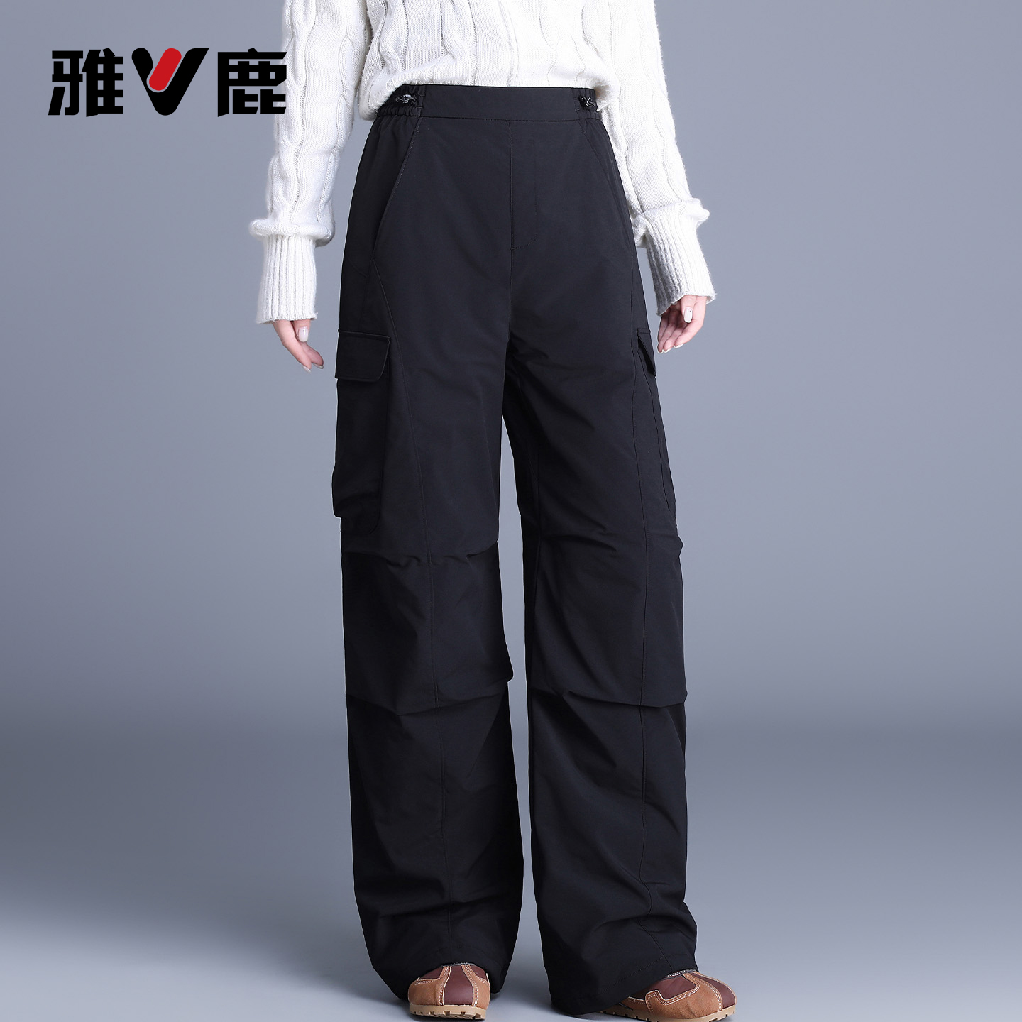 休闲裤 雅鹿2025新款 松紧高腰情侣工装 男女同款 户外登山直筒羽绒裤