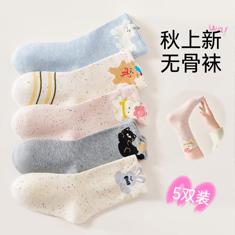 儿童袜子女童秋款 新疆长绒棉抗起球棉袜秋冬无骨抗菌女宝宝长筒袜