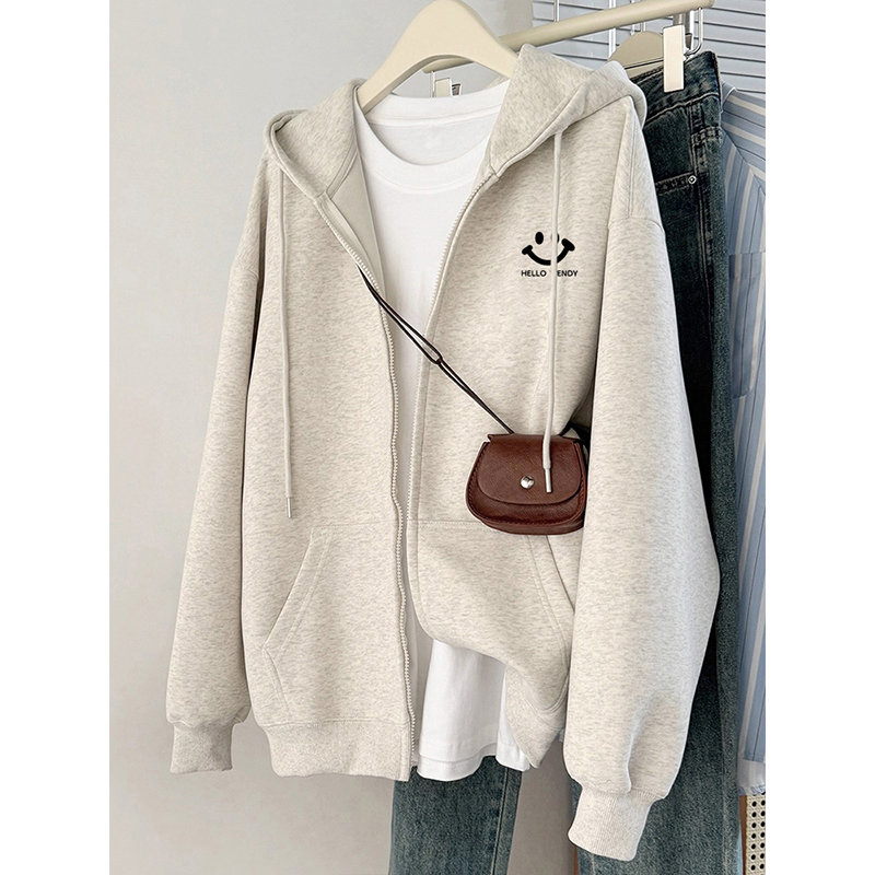 复古字母印花胖mm设计感oversize开衫 百搭外套上衣 连帽卫衣女秋季