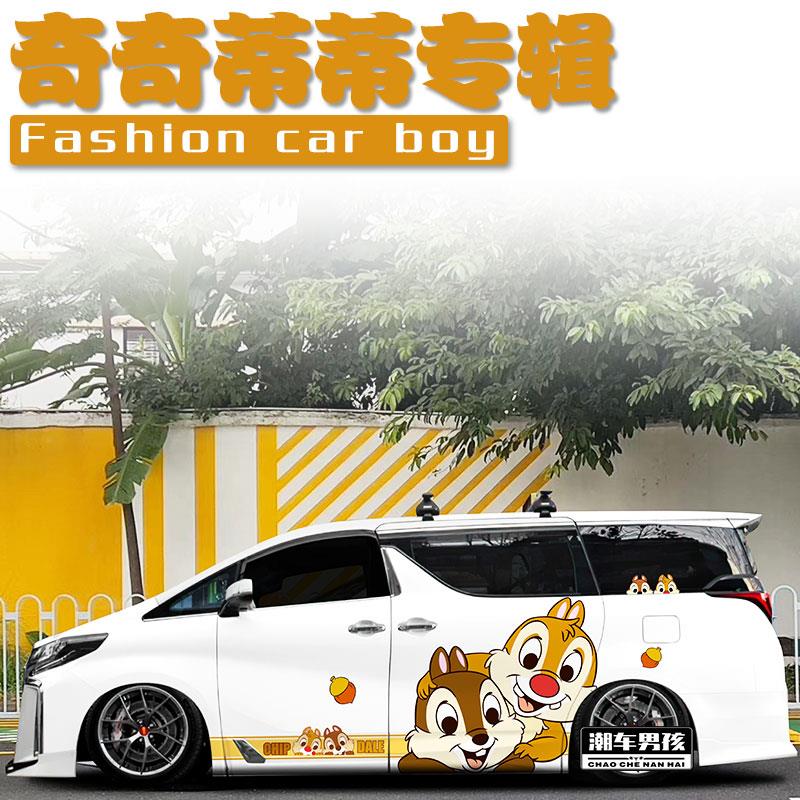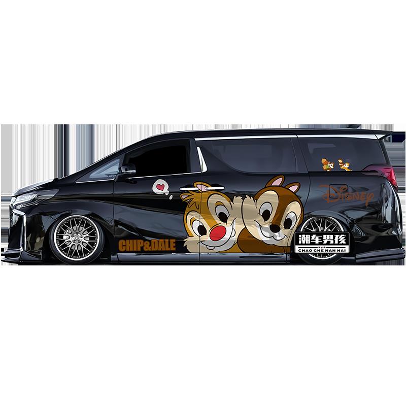 MPV车身两侧动漫卡通可爱贴纸个性 松鼠 定制 奇奇蒂蒂车贴 埃尔法