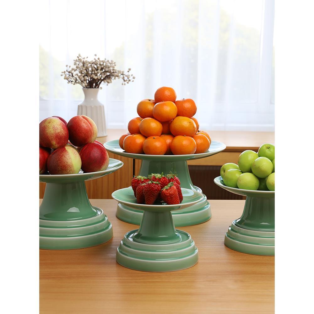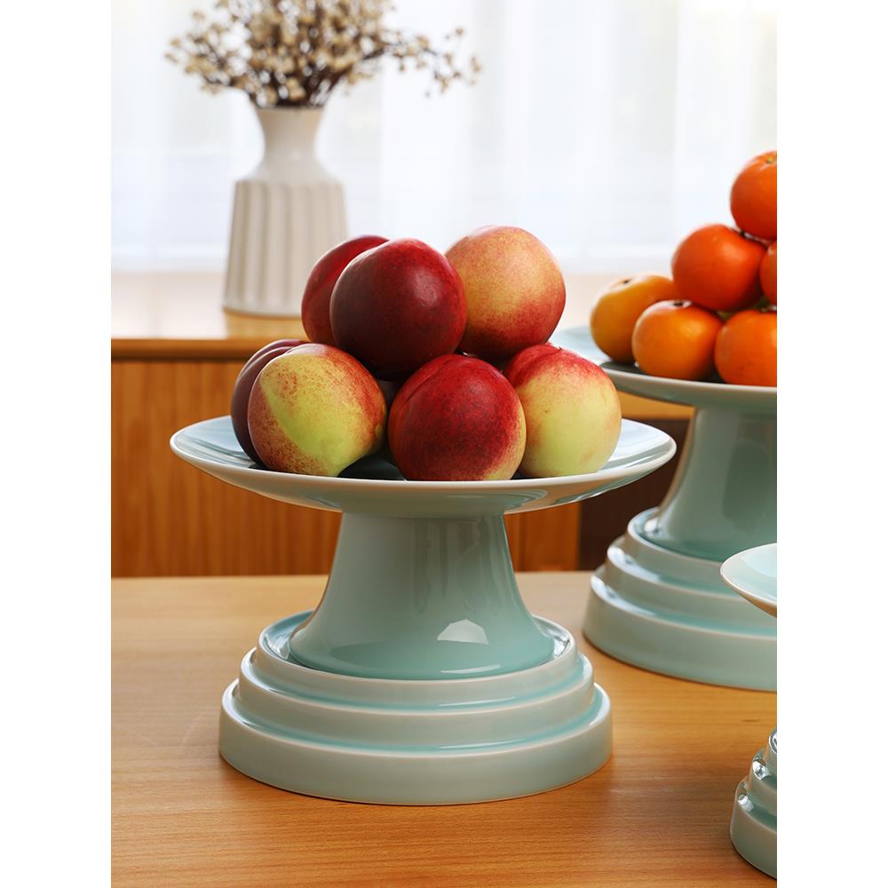 龙泉青瓷高脚果盘带底托供佛果盘供盘佛堂家用上供陶瓷水果盘素面