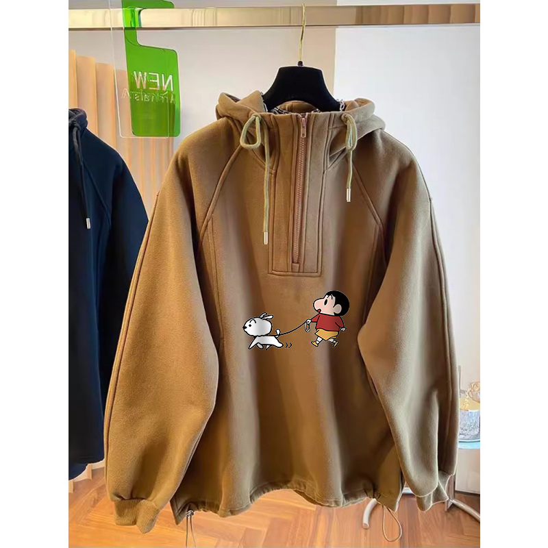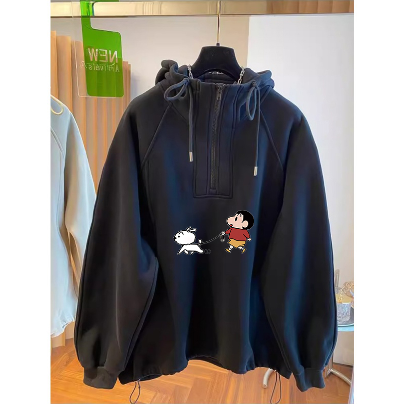 加大码 外套2 300斤日系卡通蜡笔小新半拉链连帽卫衣男女早秋情侣装
