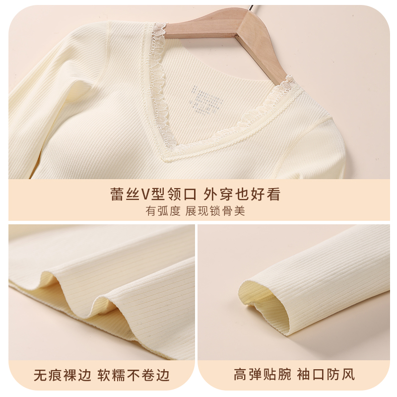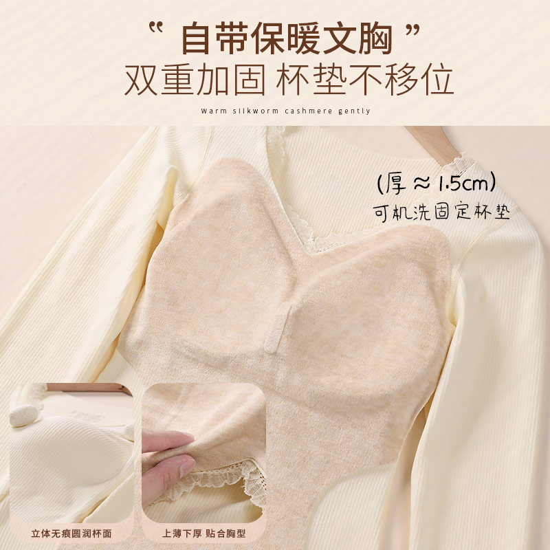 羊绒蚕丝保暖内衣女加绒加厚秋衣秋裤 带胸垫内搭外穿不透打底 套装