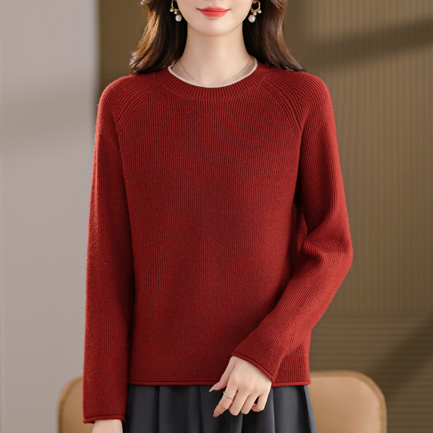 气质休闲显瘦圆领毛衣打底上衣妈妈装 2025新款 针织衫 秋冬女士时尚