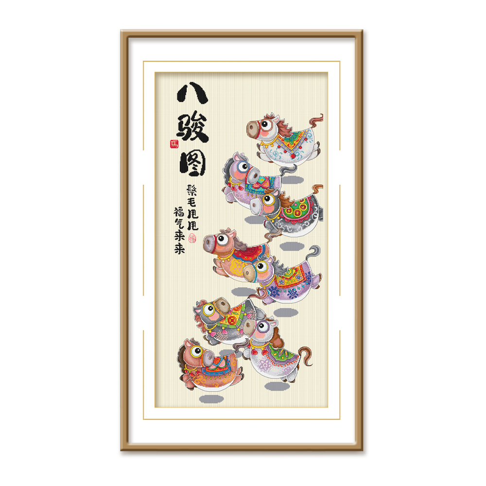 KS十字绣八骏图非满绣92色清新印花套件手工绣棉线自己绣DIY马