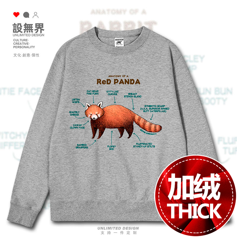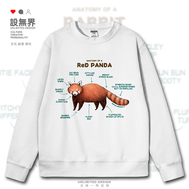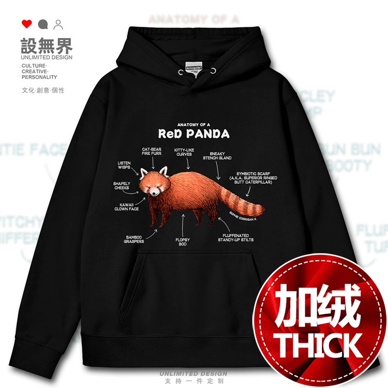 无界 潮设 动物分析图红色熊猫可爱趣味连帽卫衣男女个性 创意帽衫