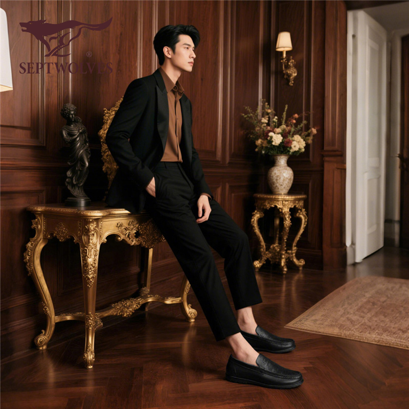 真皮豆豆鞋 新款 男款 商务黑色男士 七匹狼一脚蹬男鞋 乐福鞋 2025秋季