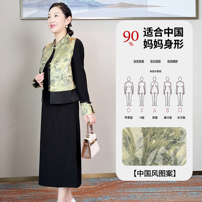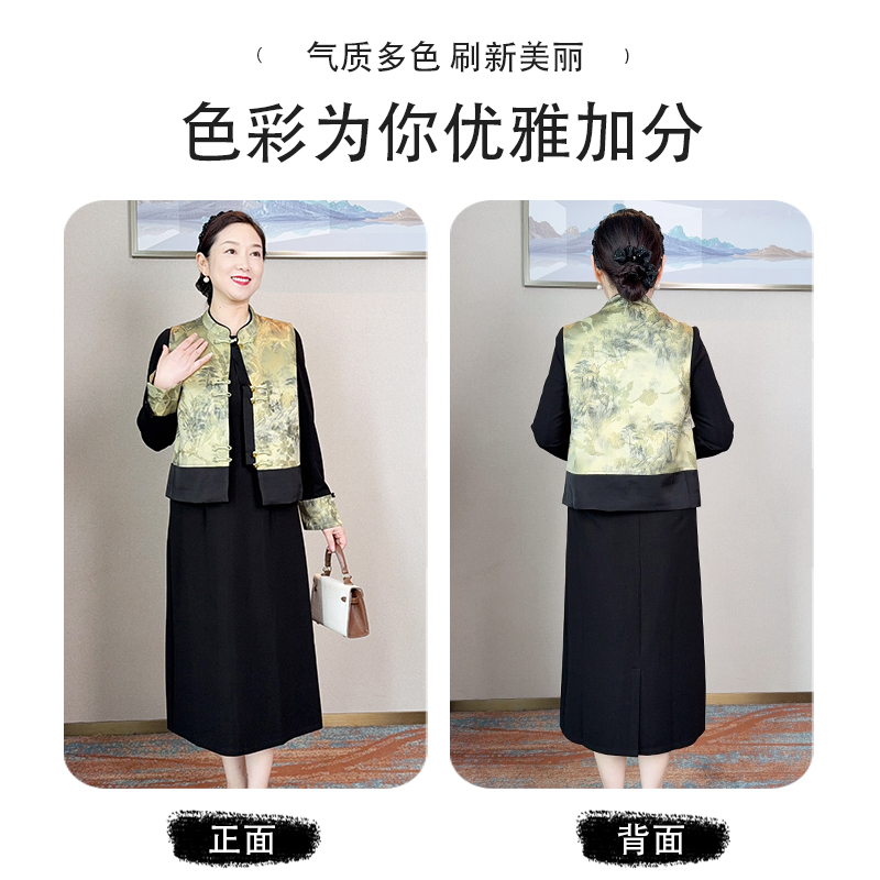 2025新款 马甲三件套装 女中老年金丝绒上衣外套 新中式 朵莹妈妈秋装