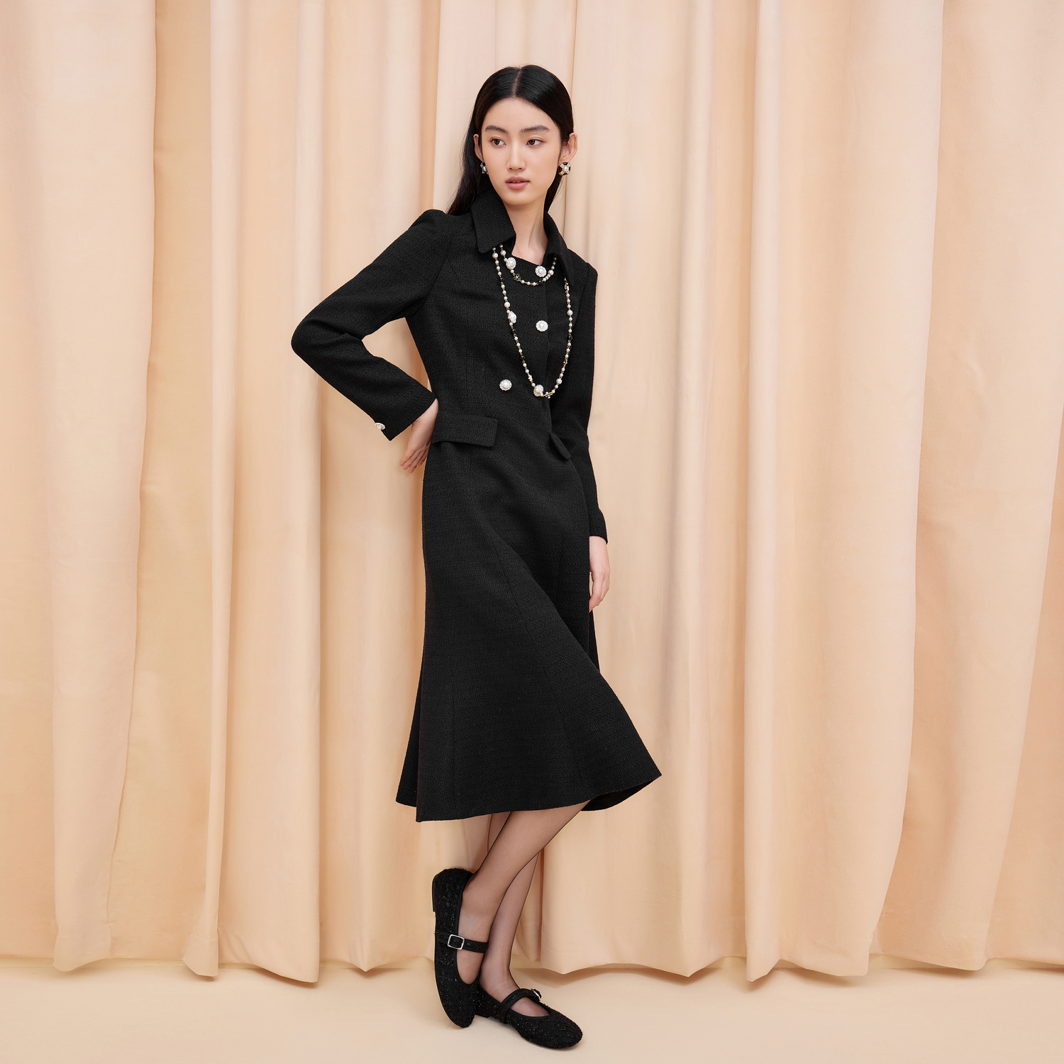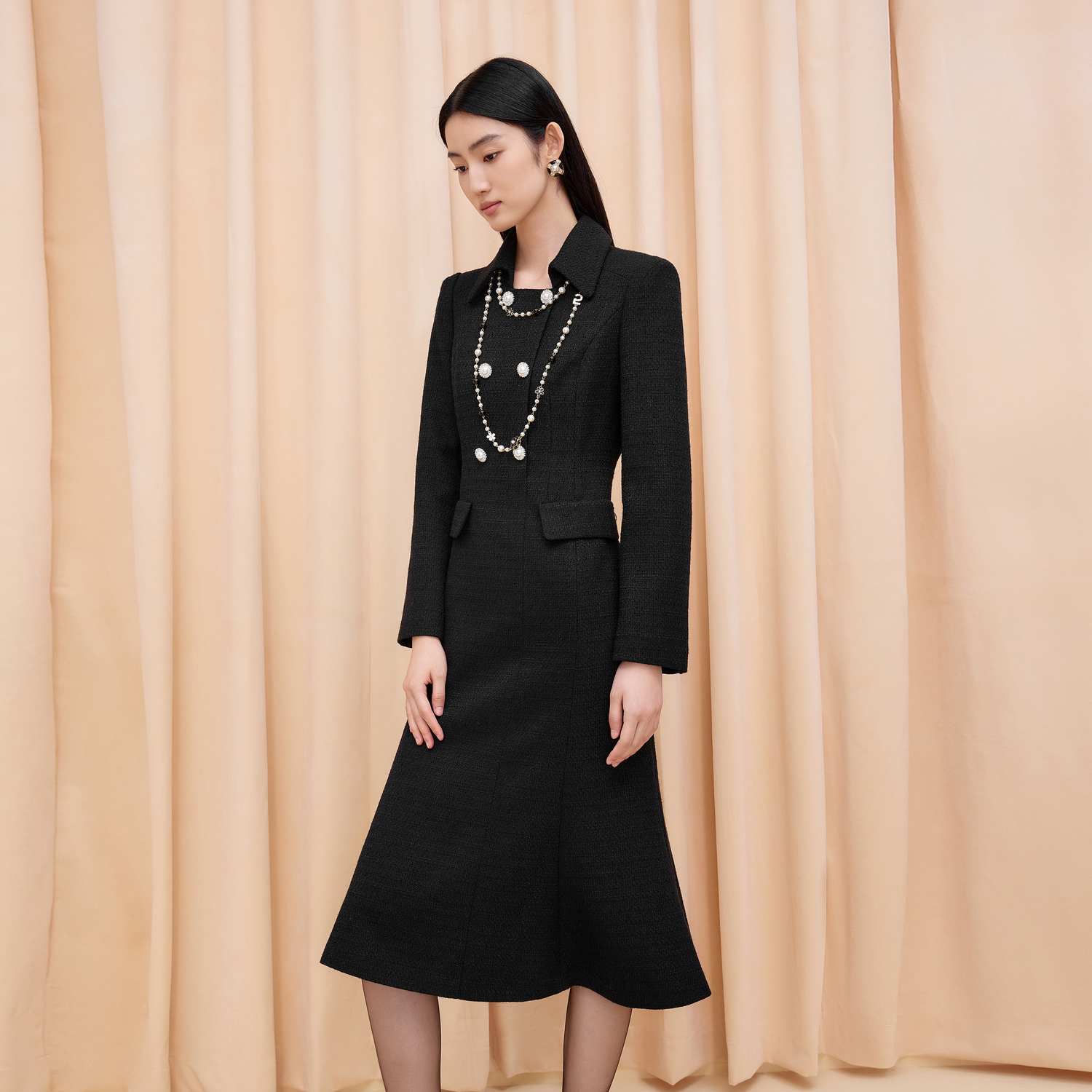 菲梦伊含羊毛白色毛呢连衣裙女秋季 轻熟高端加厚烫钻气质鱼尾裙子