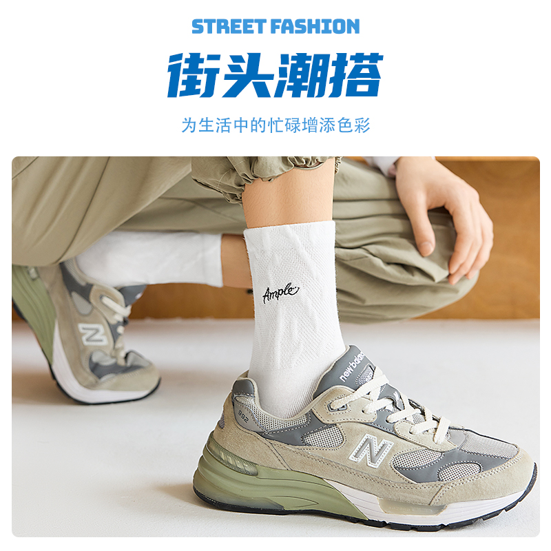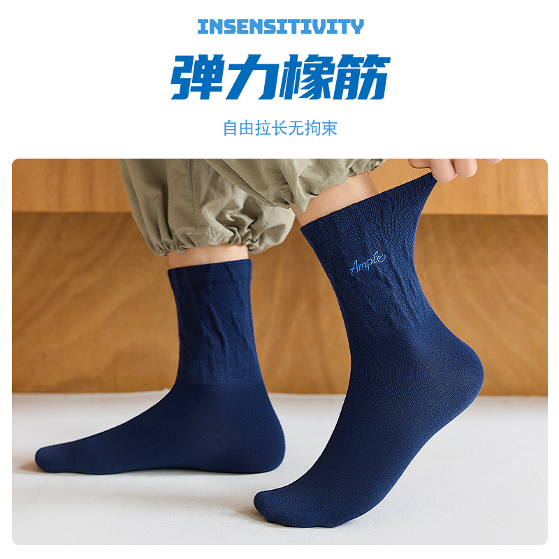 棉伙棉伴海藻袜舒适抗菌防臭男女商务运动纯色裸感中筒袜