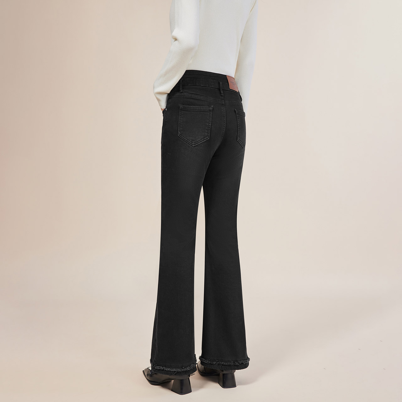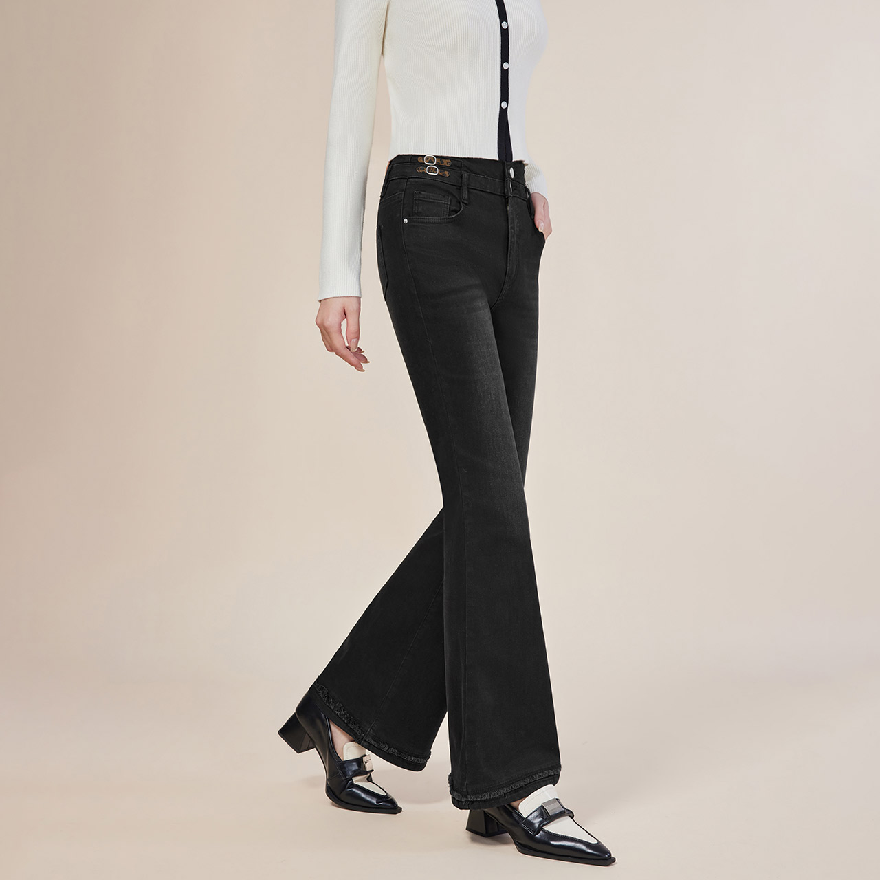 爱依服2025冬季 牛仔喇叭裤 新款 成熟通勤气质加绒百搭修身 韩版 IEF