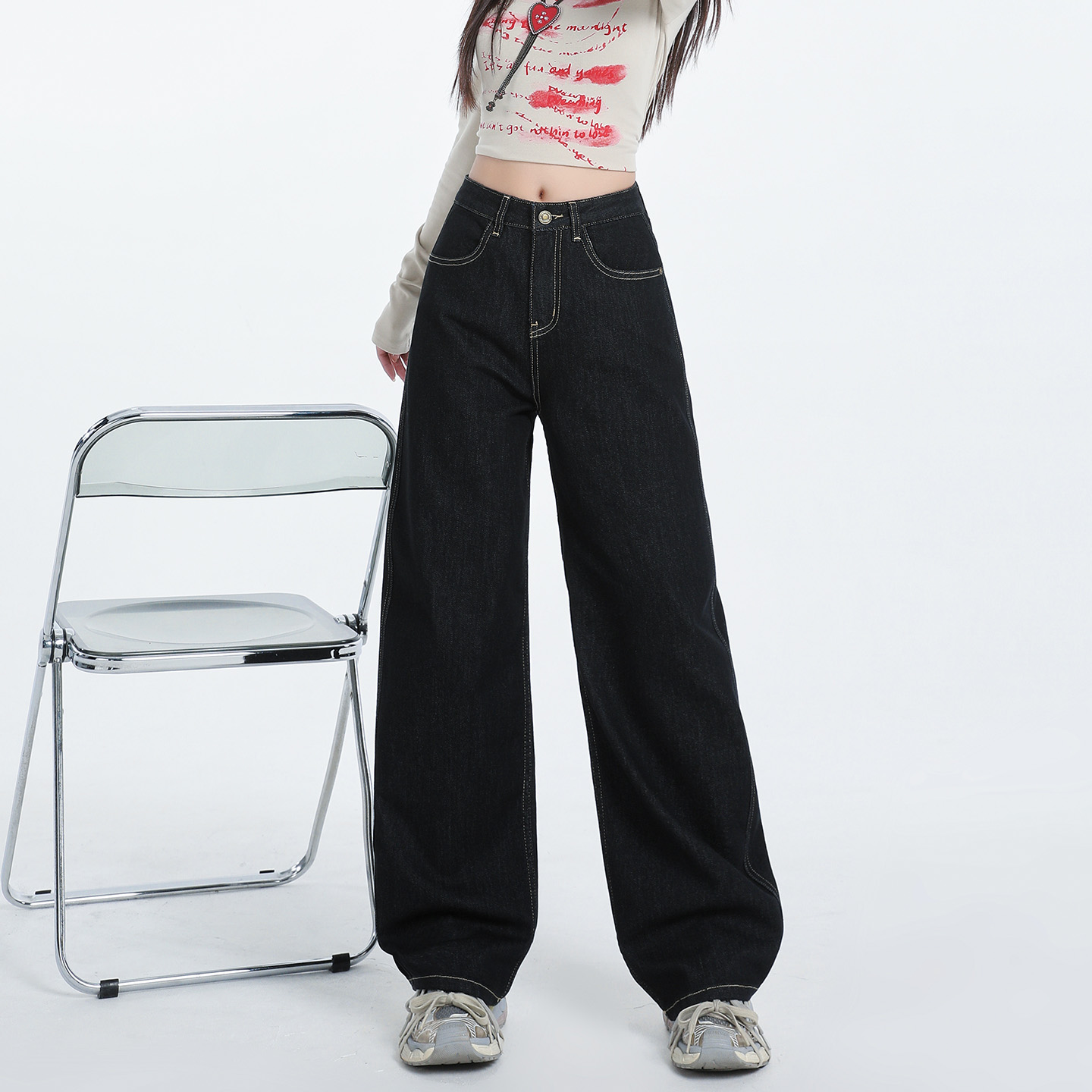 阔腿牛仔裤 藏青色九分直筒裤 女小个子裤 秋季 子2025新款 四面弹窄版