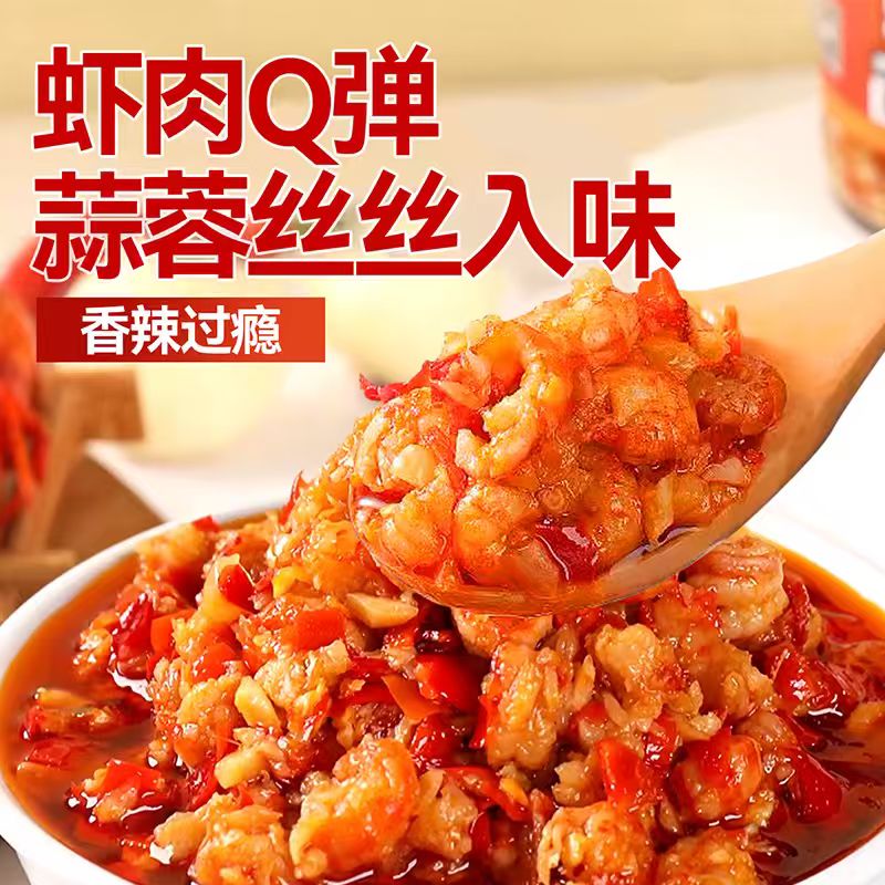 鲜蒜蓉虾尾酱湖南特产剁辣椒香辣小龙虾酱下饭菜拌面拌饭酱即食