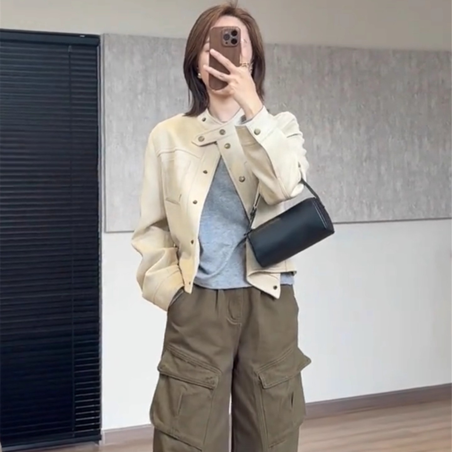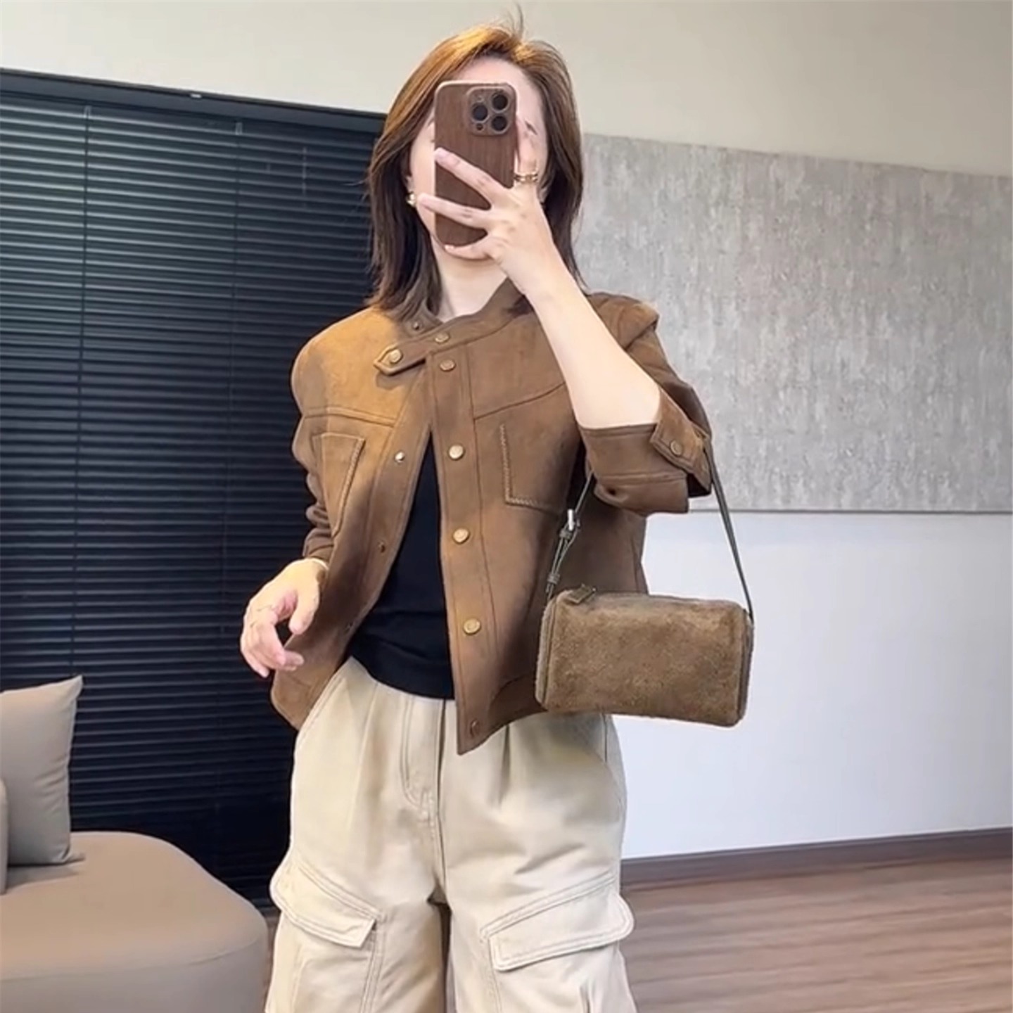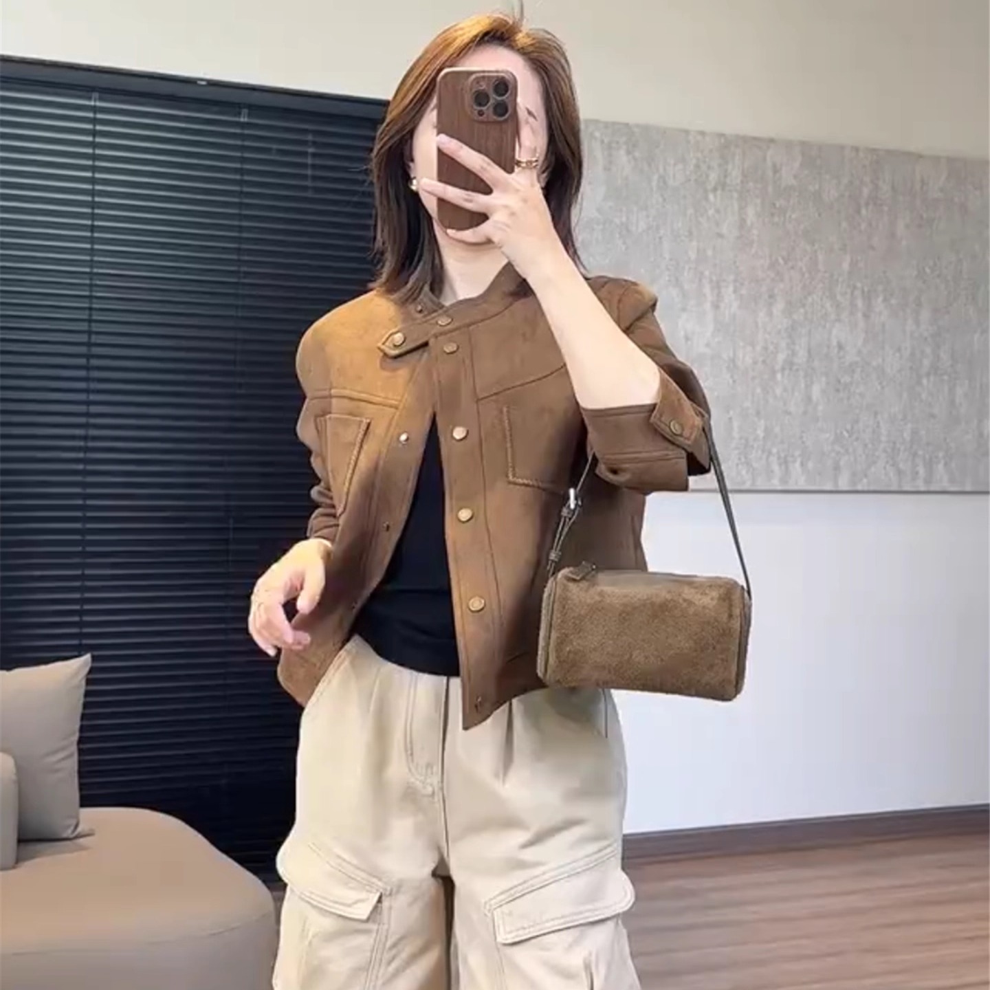 宽松复古高级感小个子上衣 2025韩版 麂皮绒外套女短款 夹克秋冬新款