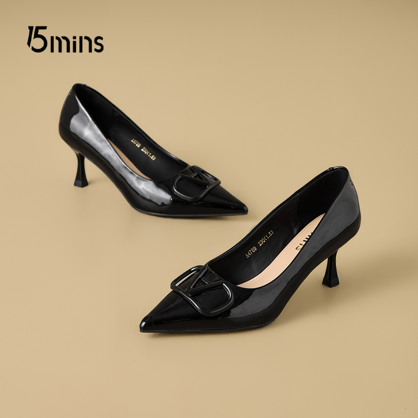女款 玛丽珍鞋 2025新款 绝美细跟尖头婚鞋 秋季 15mins复古黑色高跟鞋