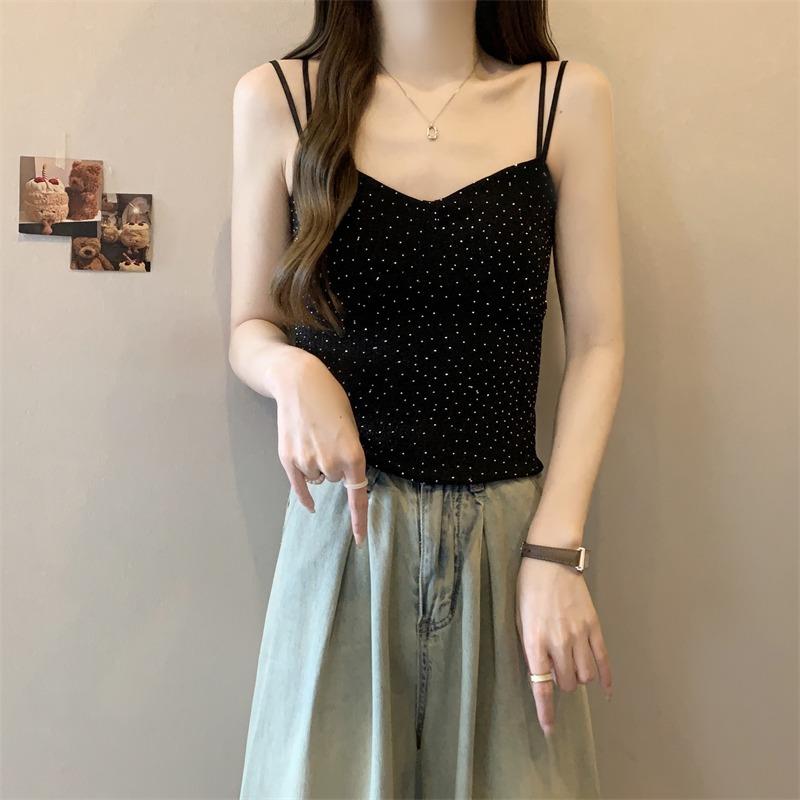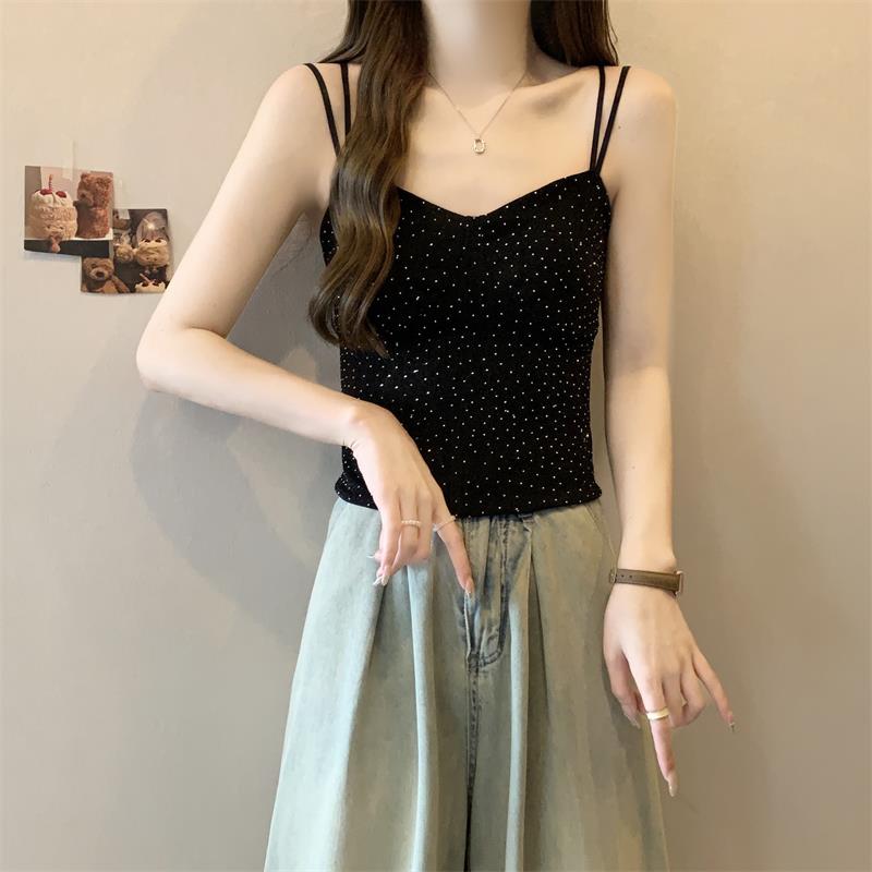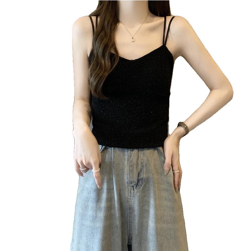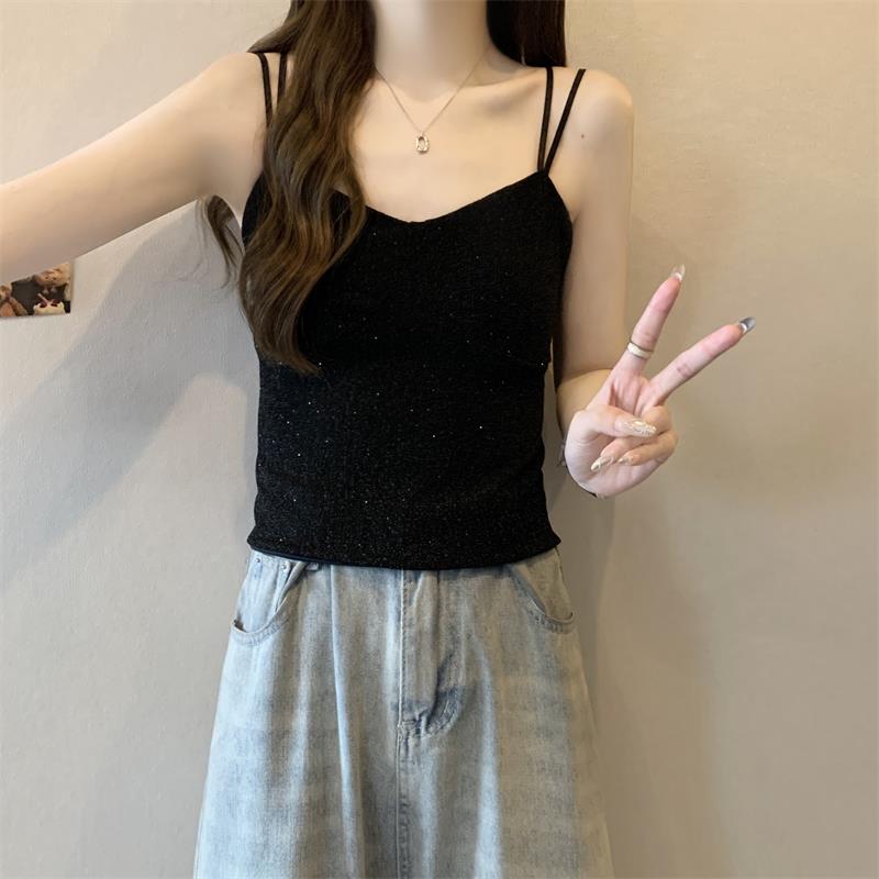 内1012z 胖mm亮闪闪美背打底衫 秋冬金丝绒黑色吊带背心女新款 大码