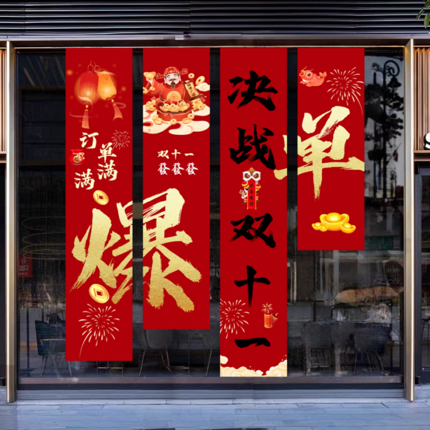 双十一场景布置商场门店铺背景墙面装 饰条幅挂布双11电商活动物料