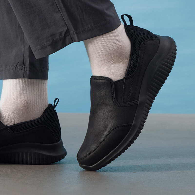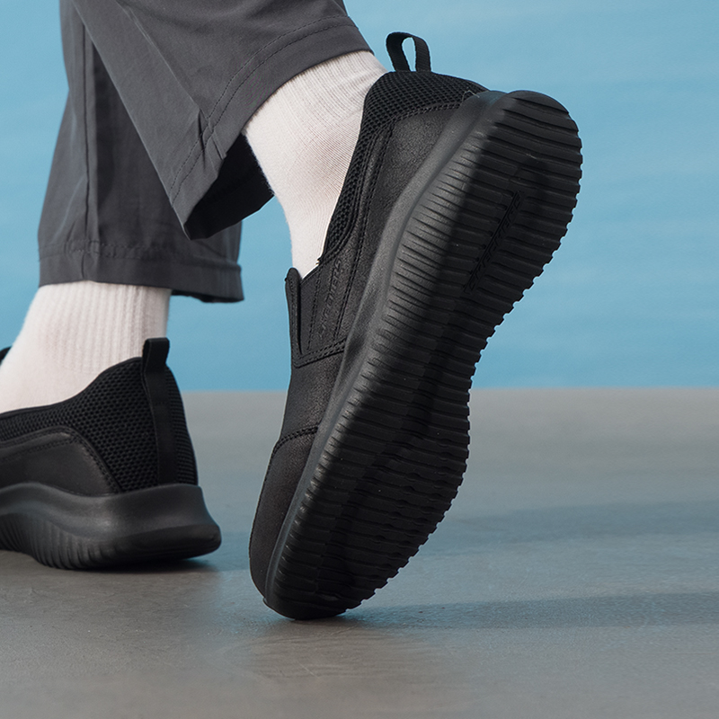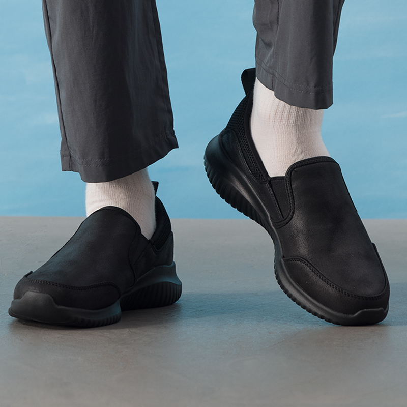 Skechers 软底轻便老人鞋 男鞋 穿脱休闲鞋 黑 秋冬2025新款 斯凯奇