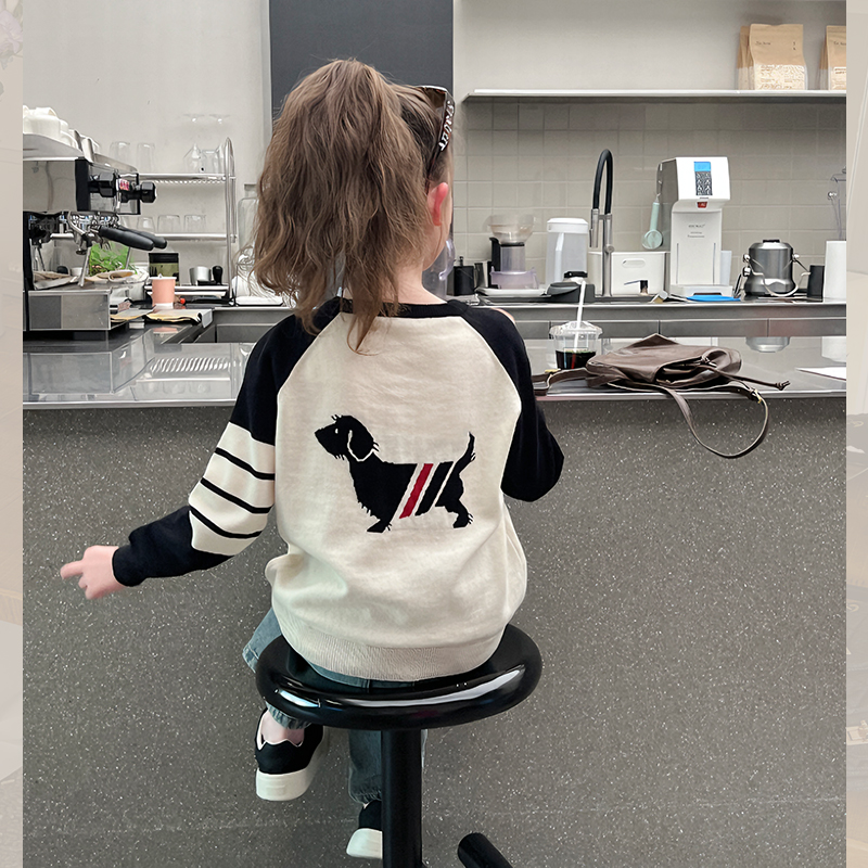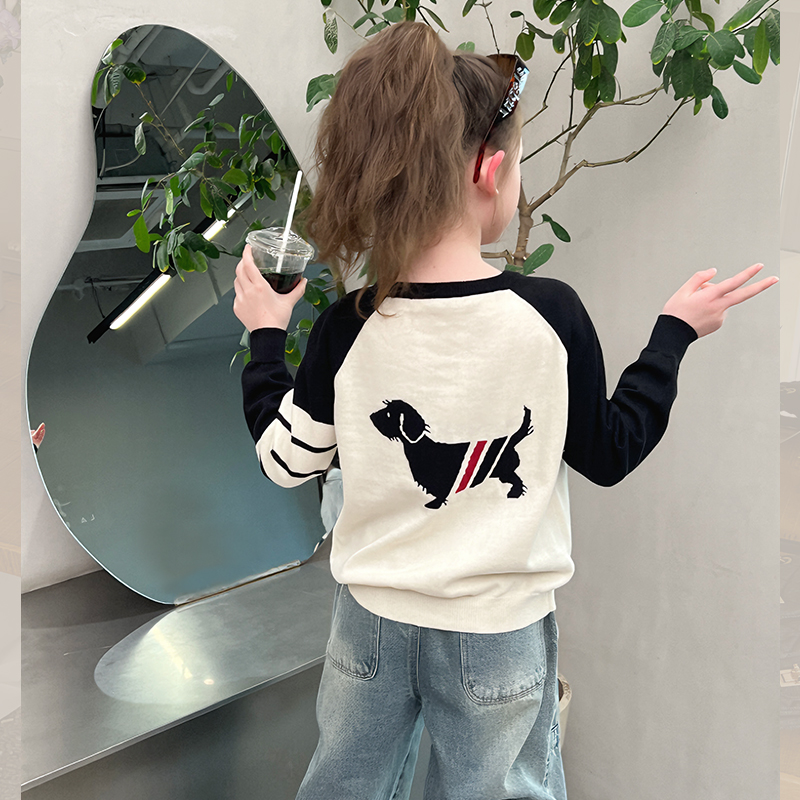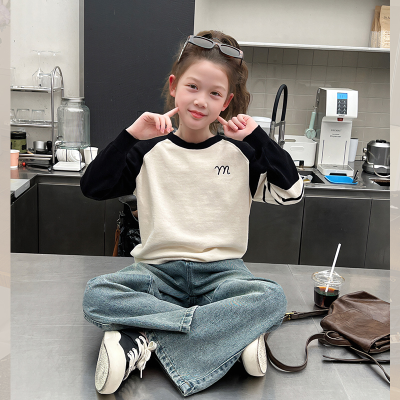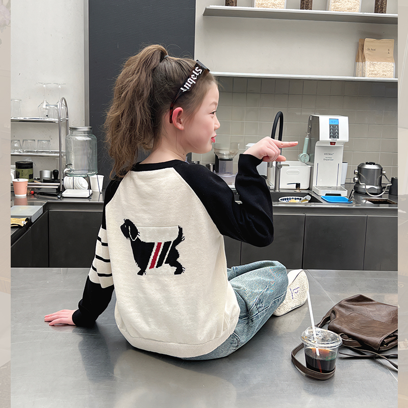 长袖 中大童宽松洋气休闲打底衫 潮 2025秋冬新款 女童撞色毛衣针织衫