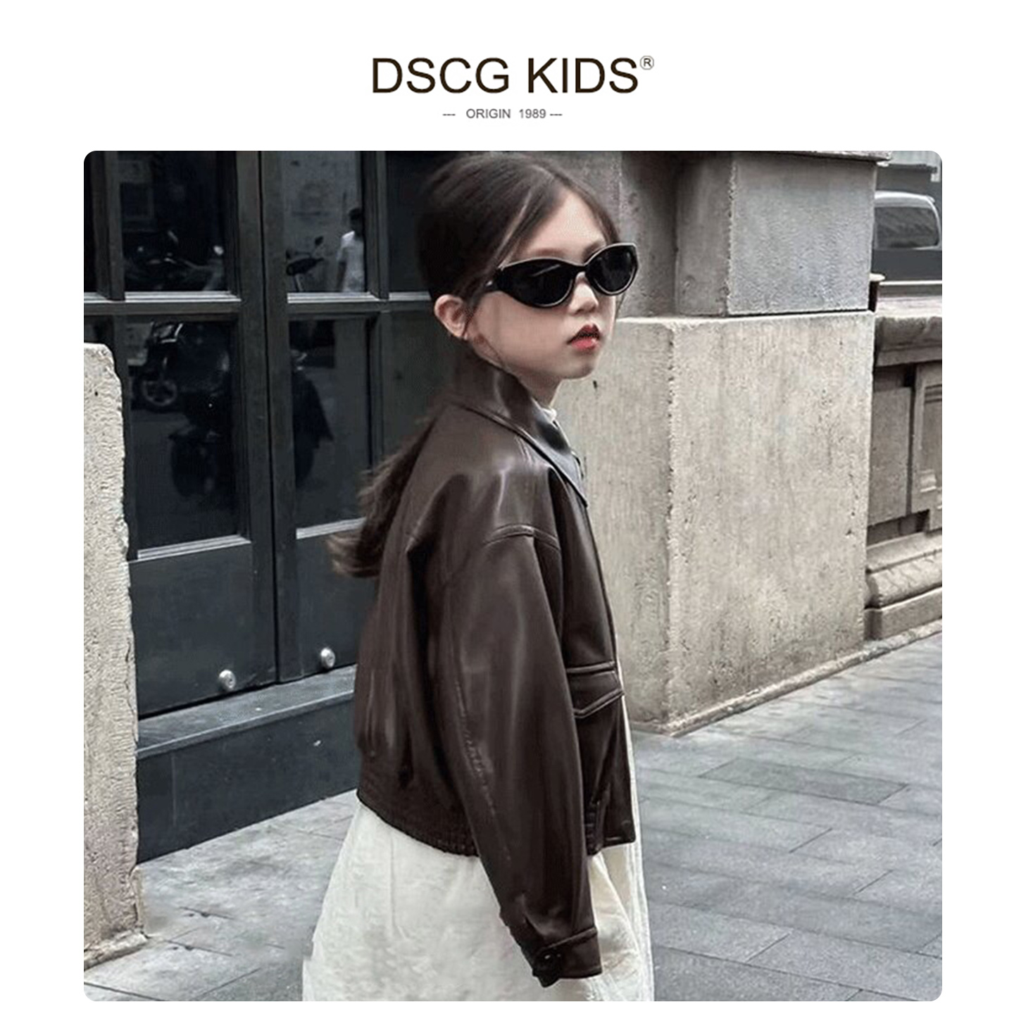 DSCG女童皮衣外套2025秋冬新款 洋气女大童学生儿童夹克机车服 韩版