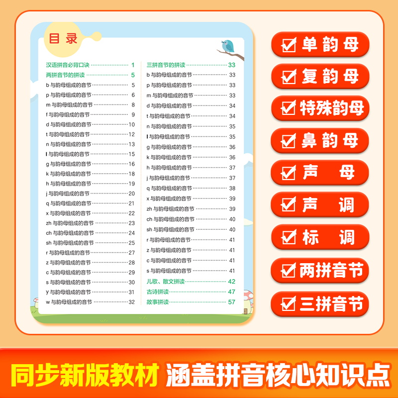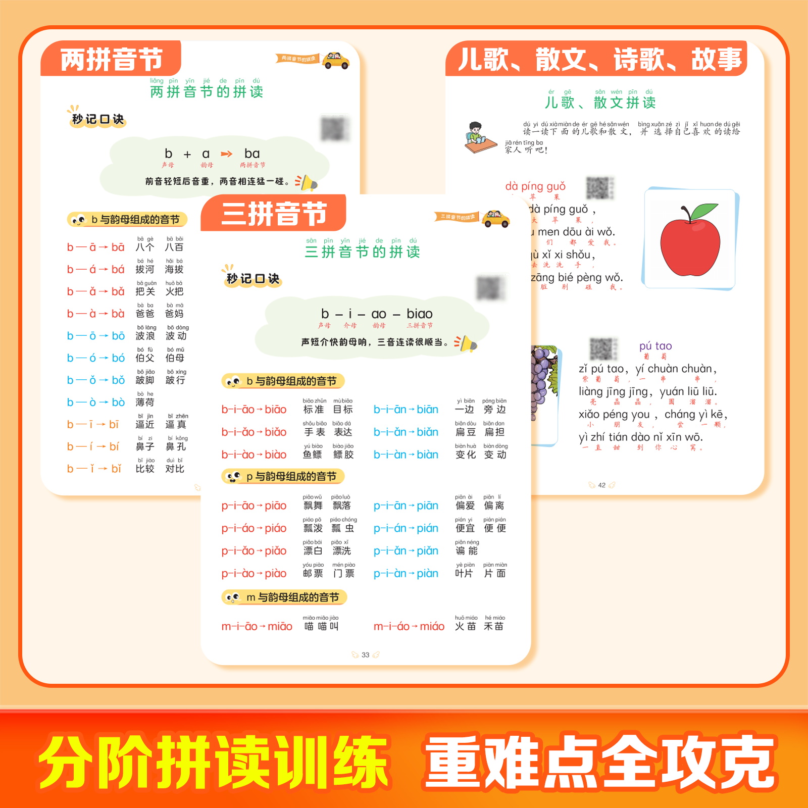 2025新版 教材拼音声母韵母整体认读音节儿童拼音启蒙神器幼小衔接专项练习册每日一练RJ 一年级口诀速记拼音拼读训练语文同步人教版