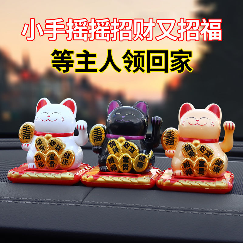 招财猫摆件自动招手汽车中控台摇手小公仔车载太阳能车内装 饰用品