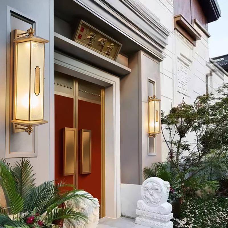 中式 户外太阳能全铜壁灯防水别墅庭院走廊阳台过道外墙灯门口壁灯