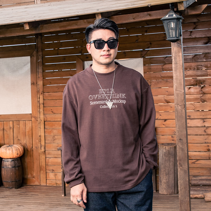 胖子休闲宽松秋冬圆领纯色绣花长袖 男装 套头卫衣 大码 GxxH潮牌新品