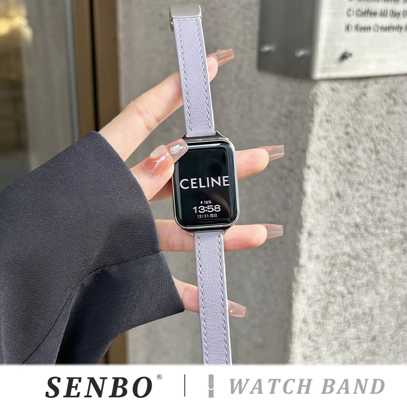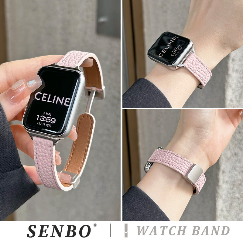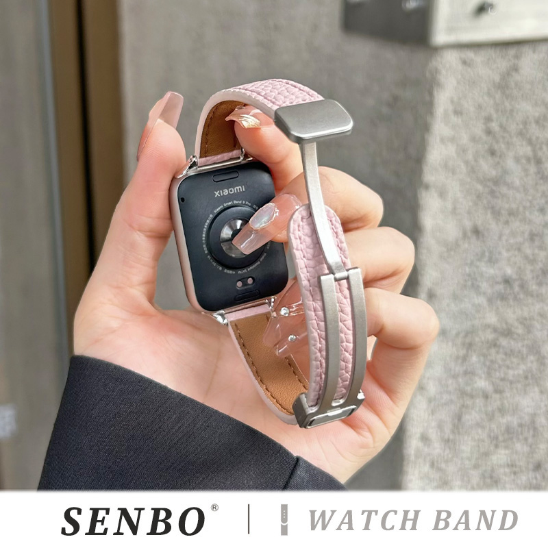 4智能运动男士 适用于小米手环9pro表带新款 折叠扣红米watch5 细款 高级感腕带 荔枝纹真皮表带小米手环8pro女款