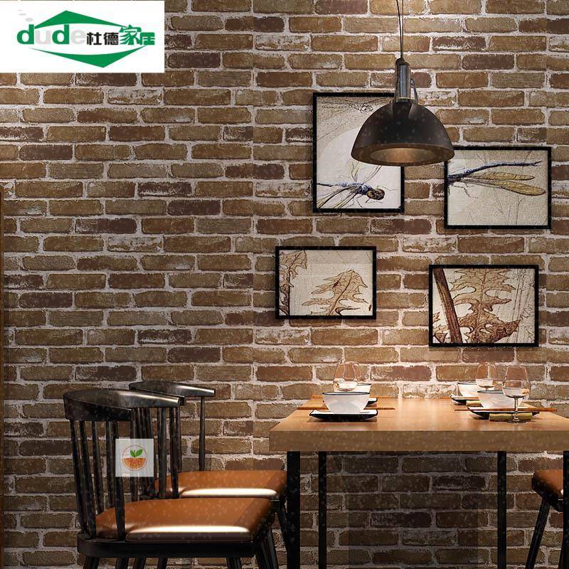 复古怀旧3D立体仿砖纹砖块砖头墙纸咖啡馆酒吧餐厅文化石红砖壁纸