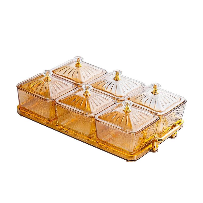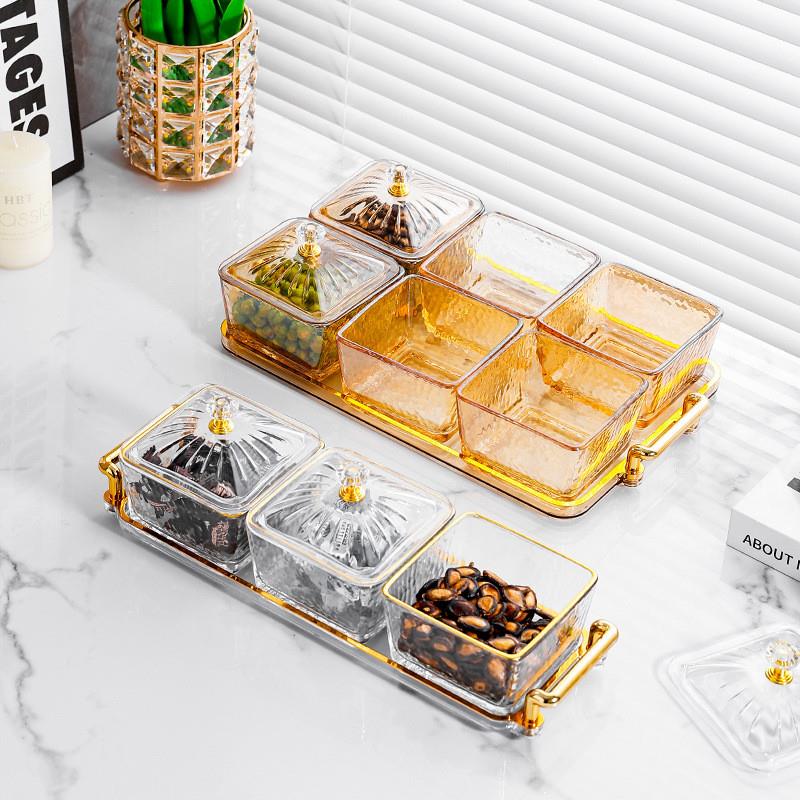 ins轻奢玻璃分格水果盘零食糖果干果小吃碟客厅家用商用ktv高颜值