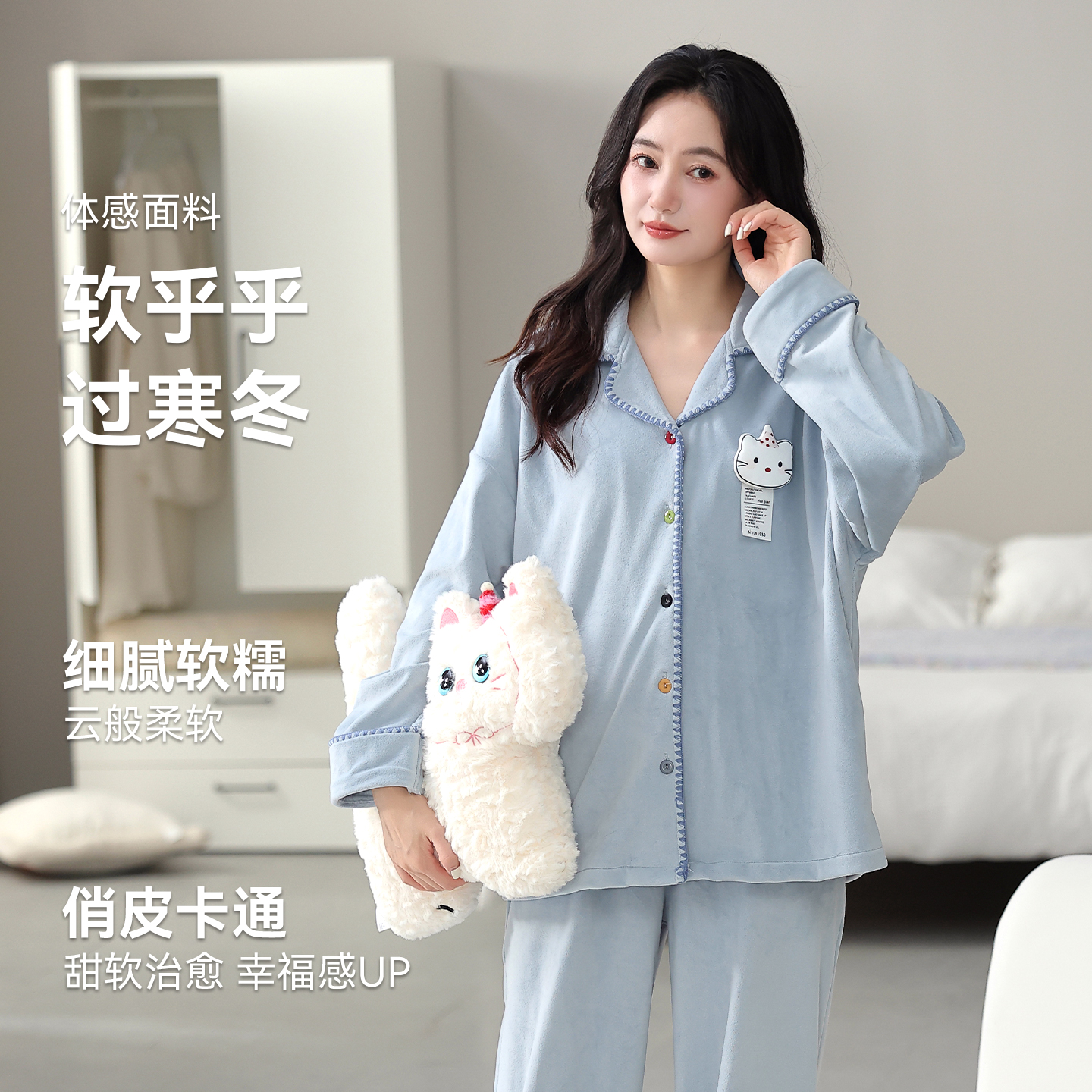 冬天女士可爱家居服 毛绒法兰绒加厚秋冬套装 睡衣女珊瑚绒冬季 冬款