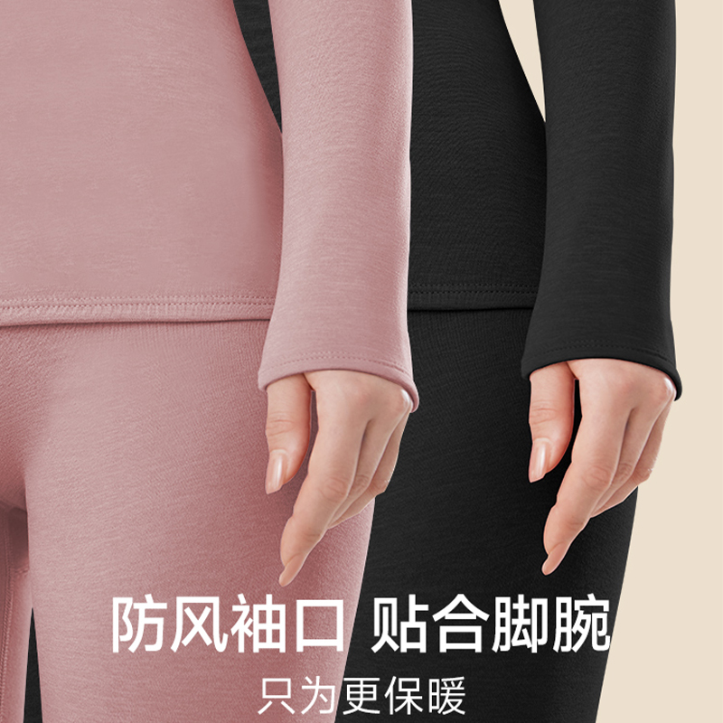女 内衣羊毛秋衣秋裤 肖战同款 小黑猫猫人倍暖5.0科技打底保暖套装