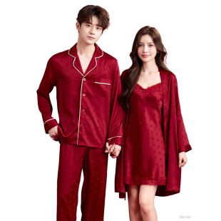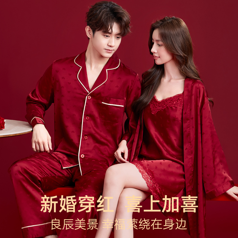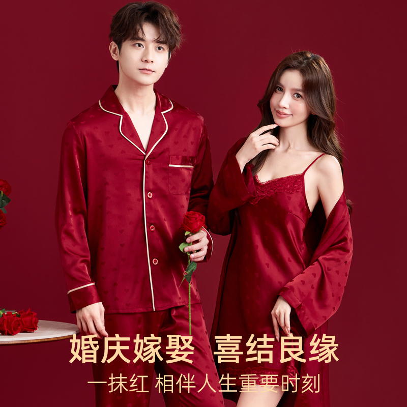 家居服女 男红色本命年结婚新婚大码 芬腾情侣睡衣春秋纯棉长袖 套装