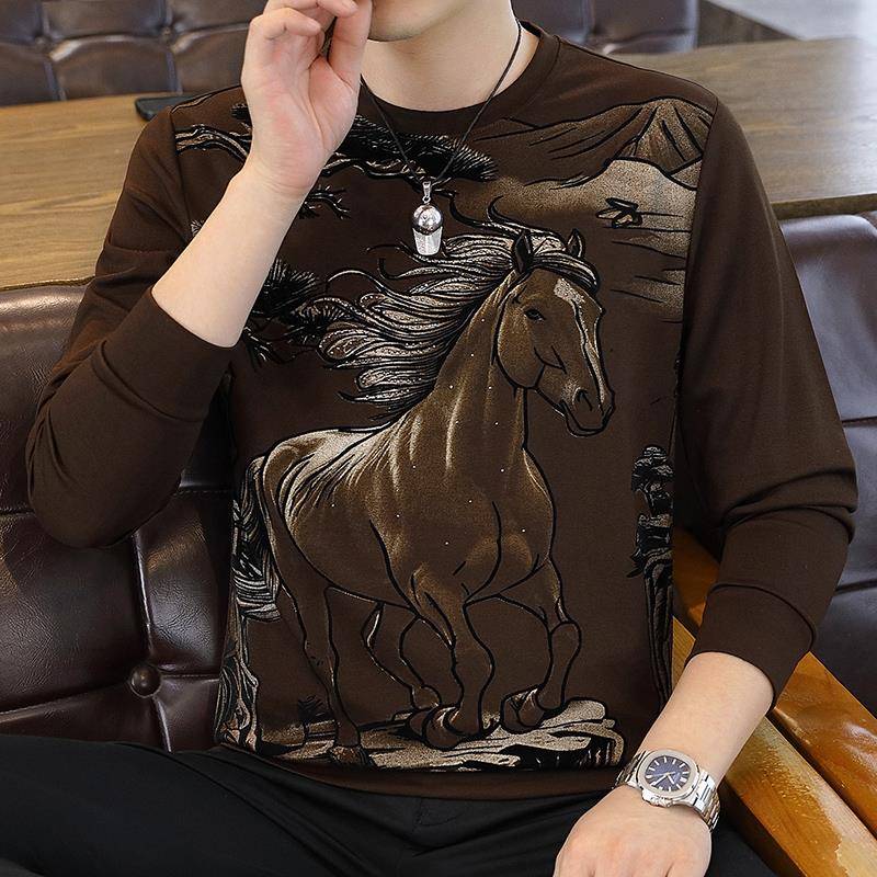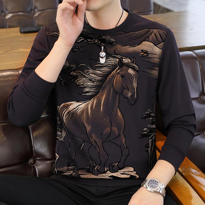 刺绣休闲打底衫 新款 内搭厚卫衣男 海澜之家山不在高系列25秋季 HLA