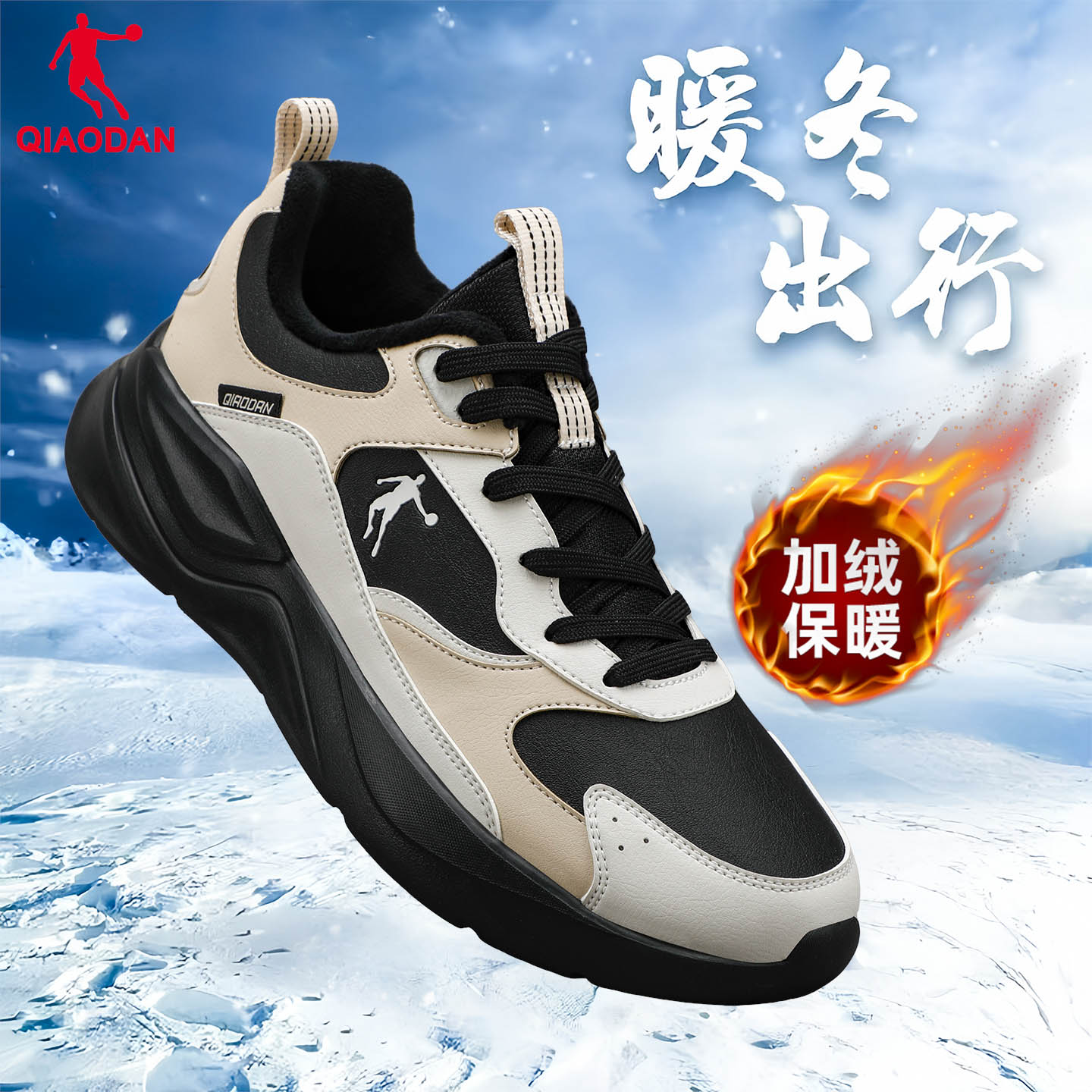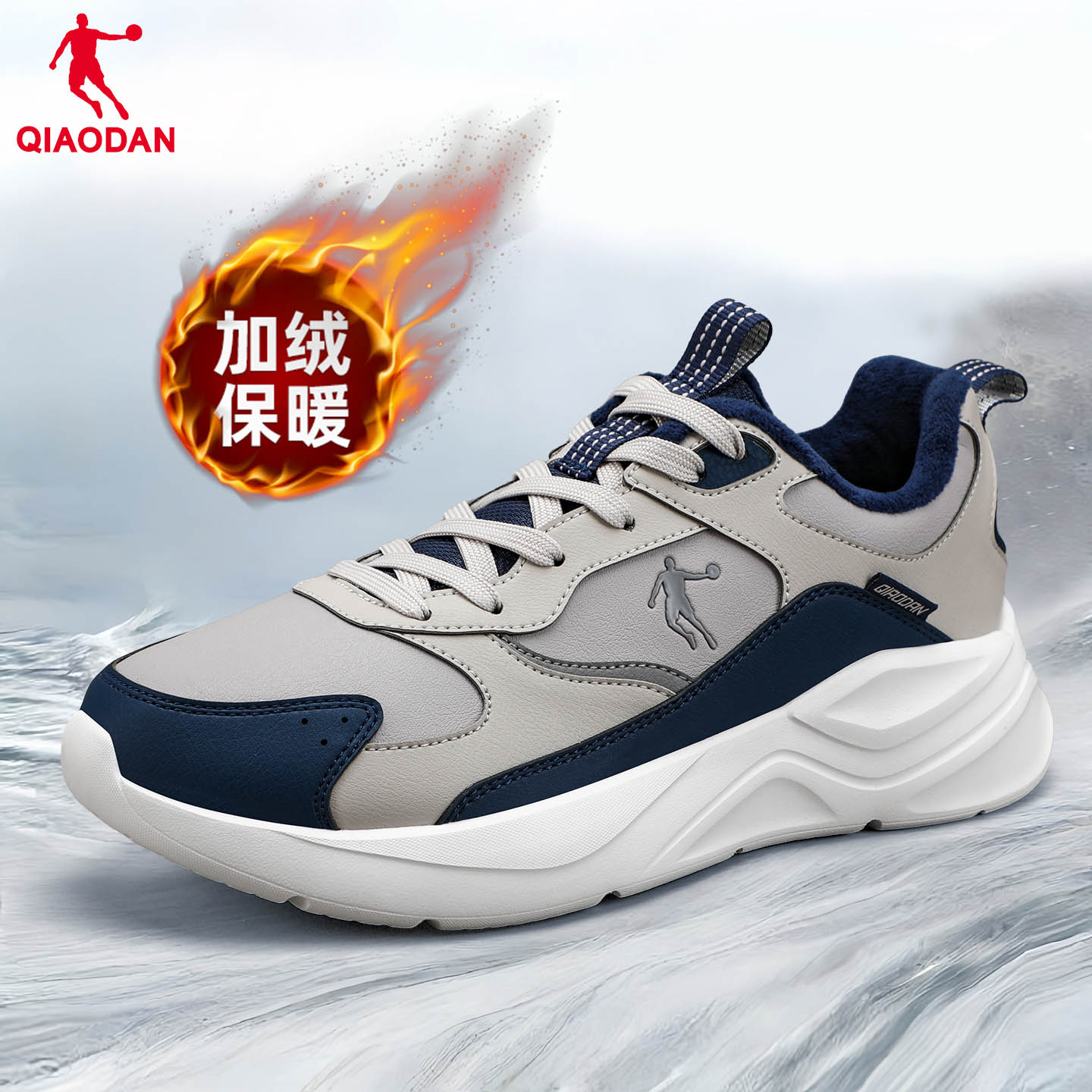 男鞋 户外休闲鞋 2025秋冬季 跑步鞋 官方皮面加绒保暖棉鞋 乔丹运动鞋