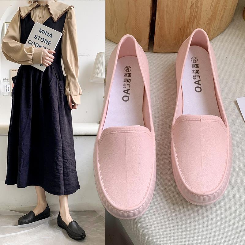 外穿韩版 浅口低帮雨靴舒适平底女妈妈豆豆雨鞋 女防水防滑水鞋 雨鞋