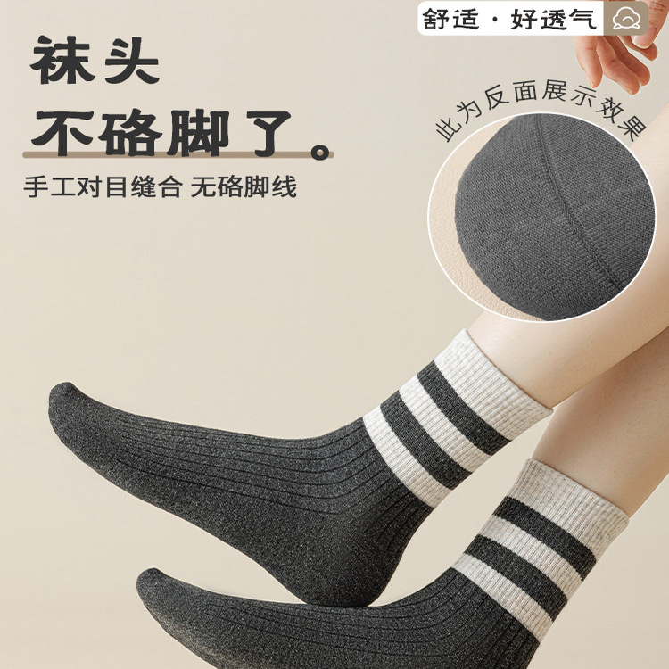 都市丽人袜子女款 吸汗防臭条纹月子长袜 春秋纯棉中筒袜2025新爆款