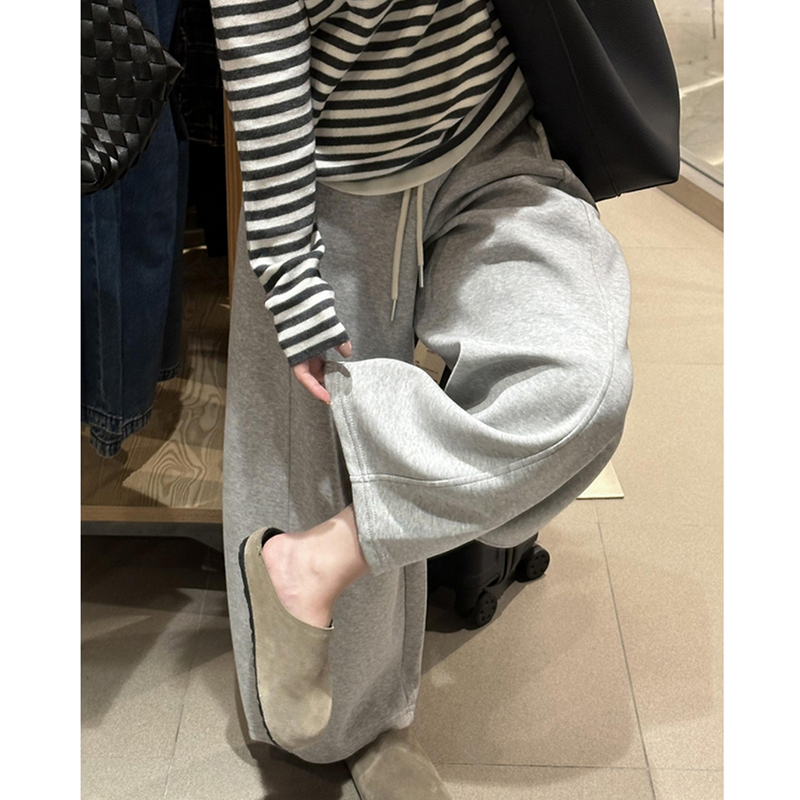 高级宽松bf慵懒垂感直筒加绒休闲阔腿裤 2025新款 子女春秋季 糯米裤