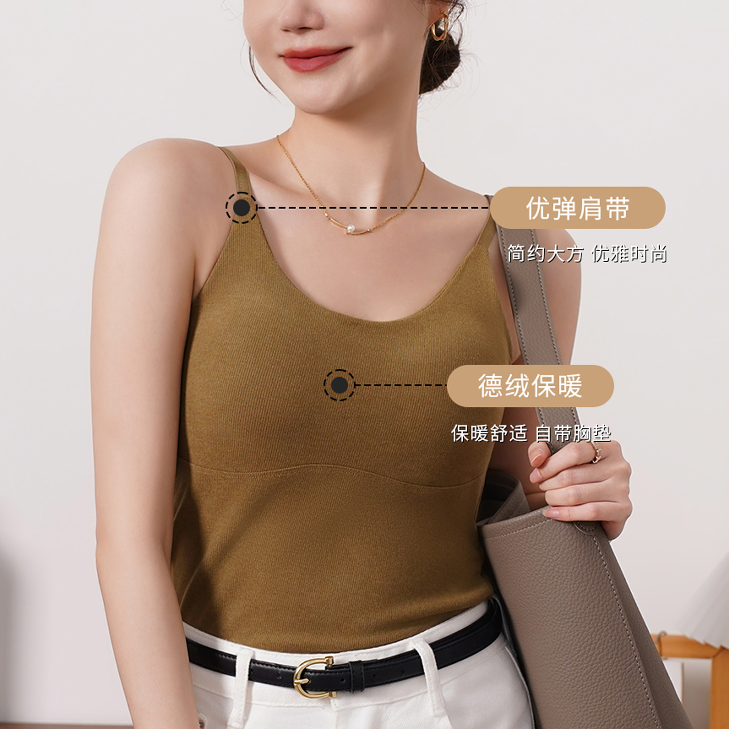带胸垫文胸bra一体女德绒加绒加厚冬天内搭无袖 发热保暖背心吊带