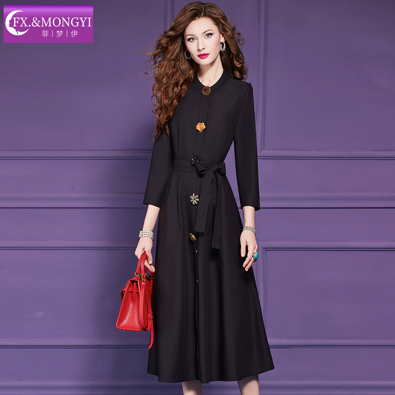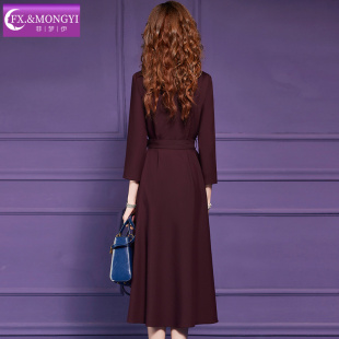 收腰百搭气质中长款 极简风时尚 大摆裙 连衣裙女秋季 菲梦伊红色衬衫