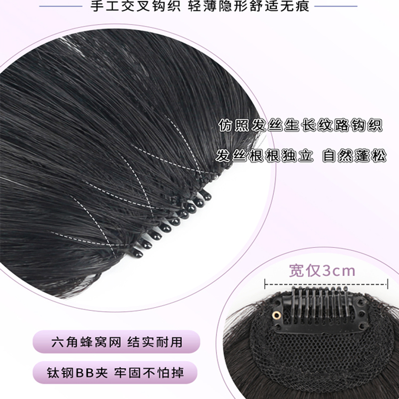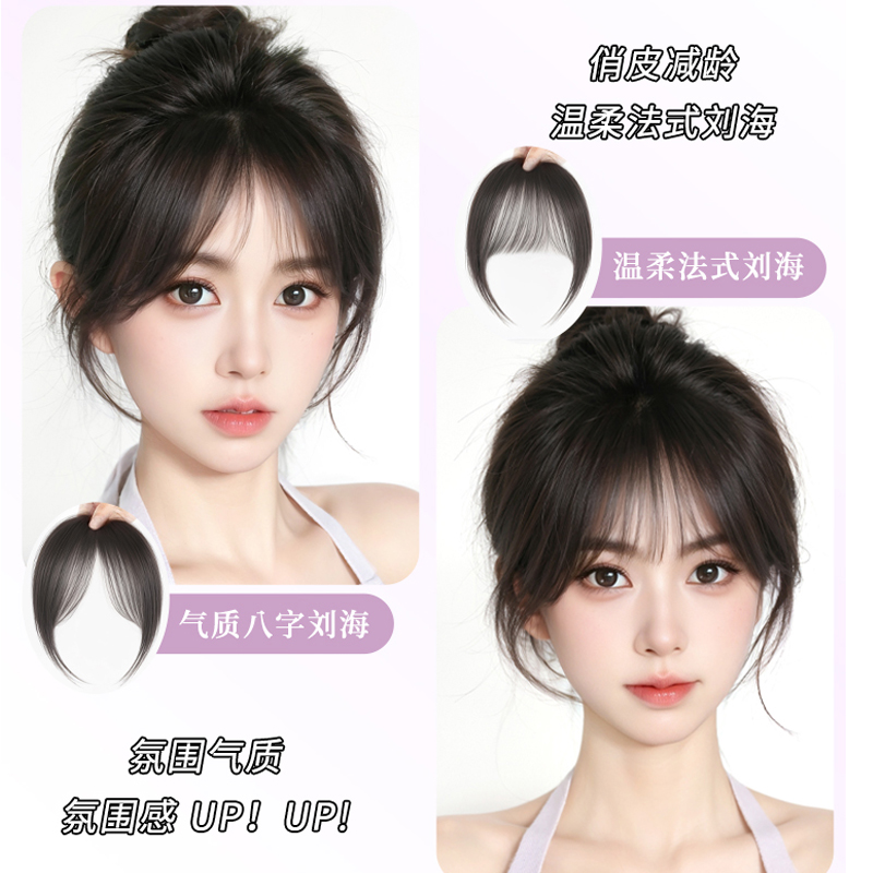 刘海片假发女头顶自然前额真发八字空气刘海无痕款 假刘海蓬松 法式