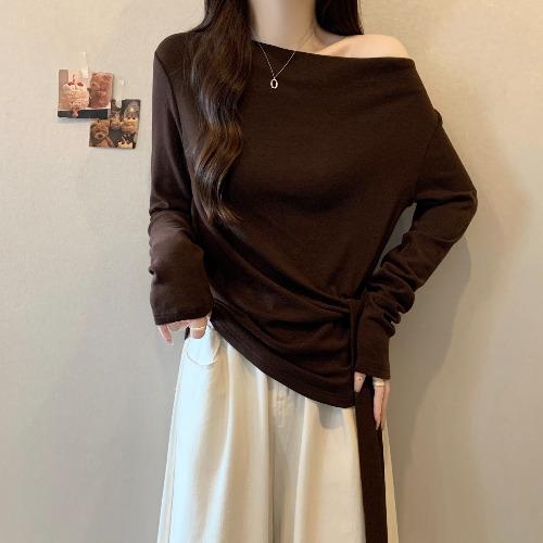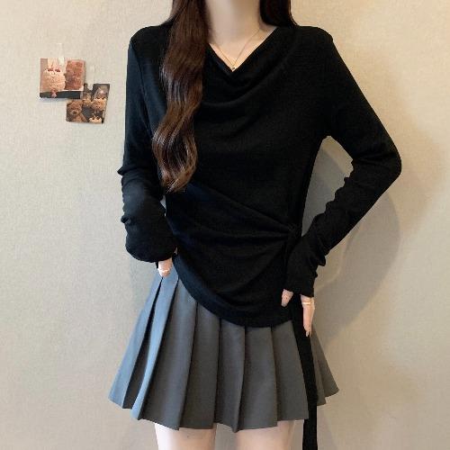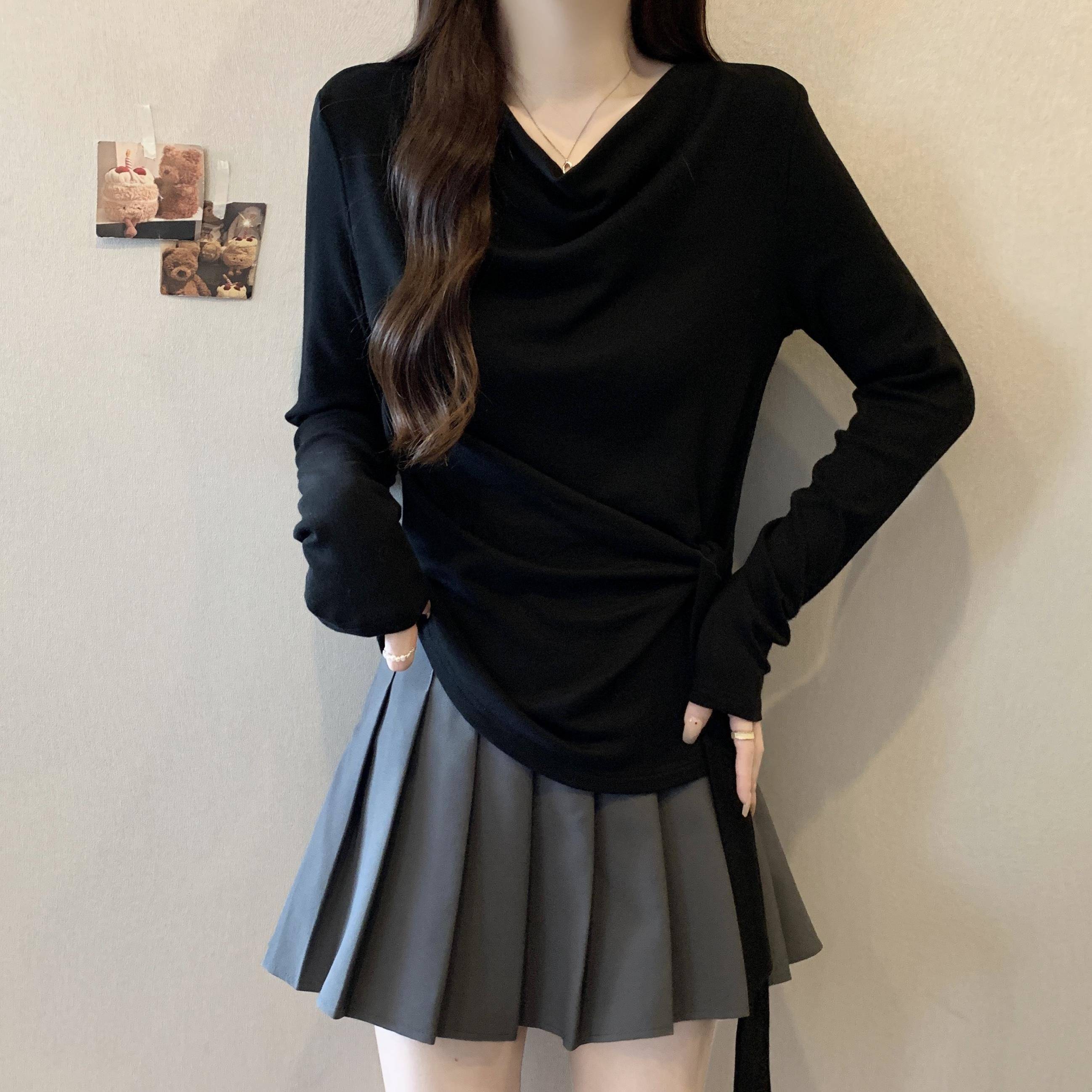 秋冬打底内搭不规则荡领系带长袖 胖妹妹百搭气质1007k 上衣女大码