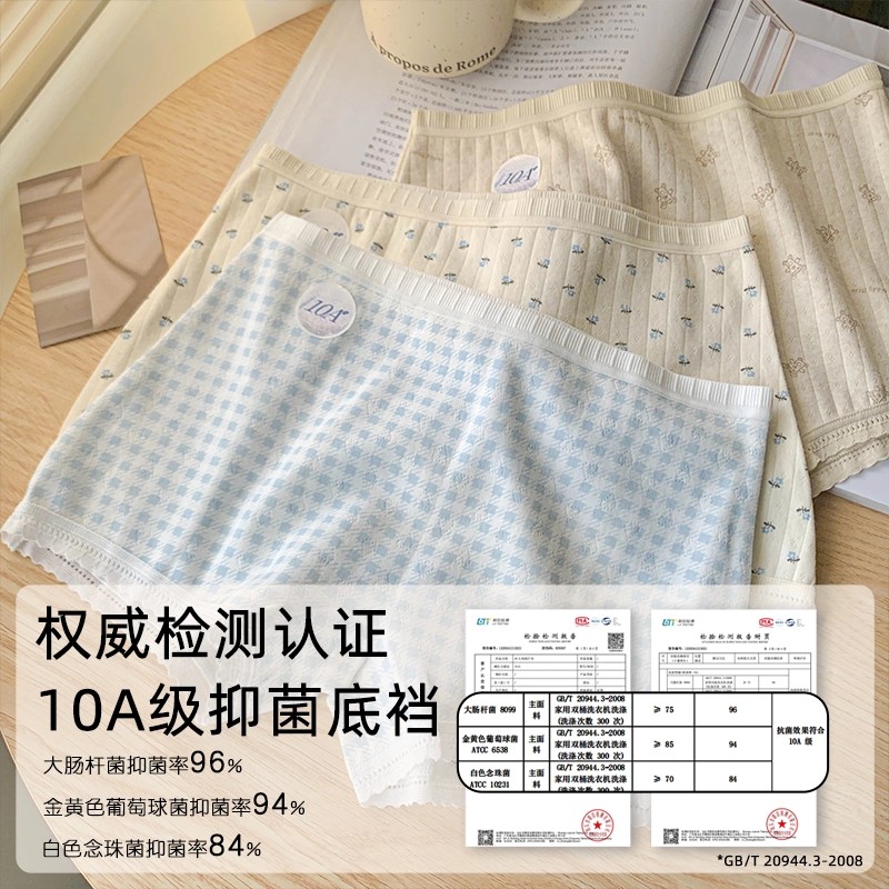 安全裤 菇娘家10A抗菌纯棉四角内裤 女生透气短裤 女士平角裤 女大码